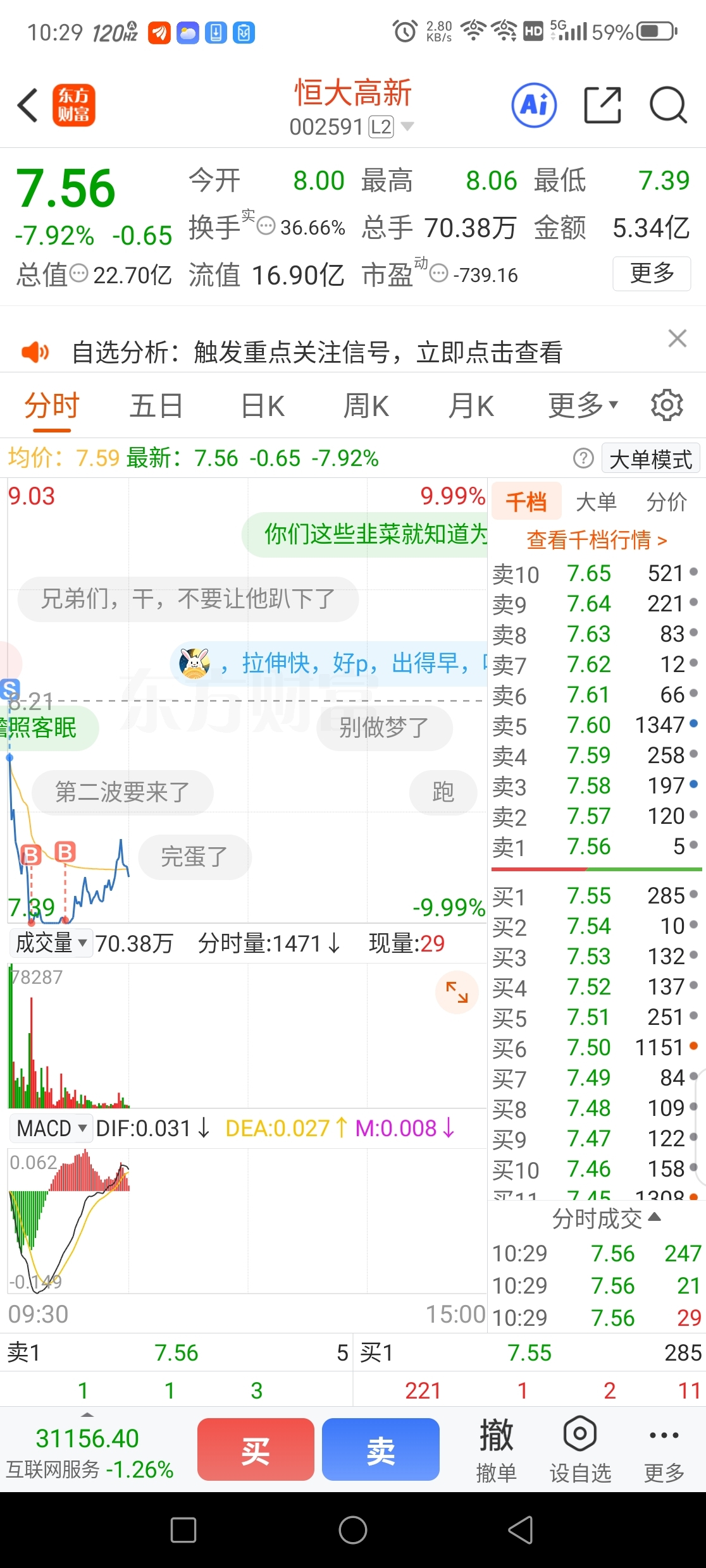 $恒大高新(SZ002591)$ 兄弟们,我尽力了