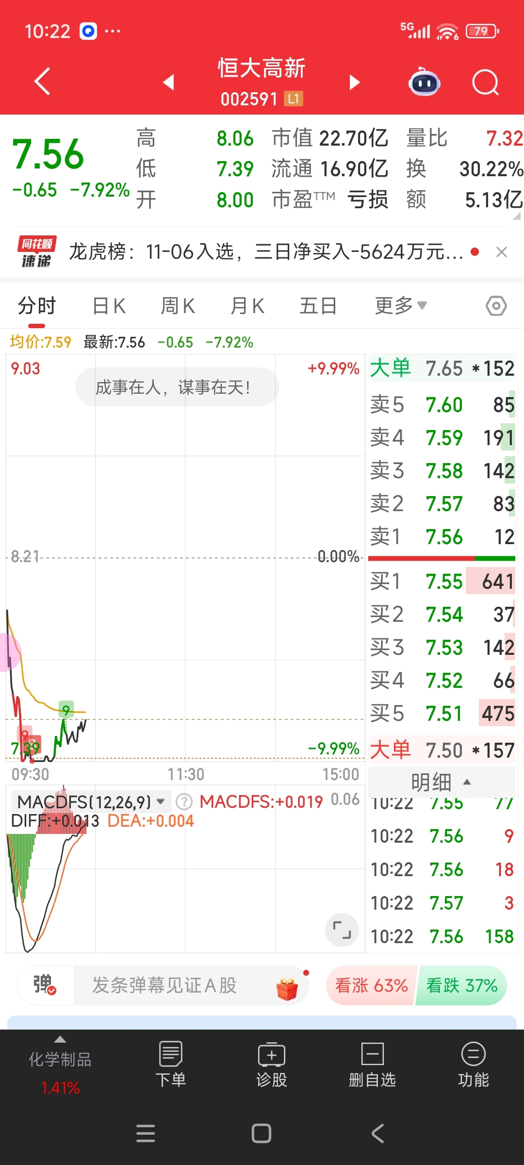 $恒大高新(SZ002591)$ 今天翘板失败,我尽力了,不过这票不用担心,去找找看有没有这种顶一字板见顶的票,如果今天有水上拉高诱多然后收盘跌停,基本上这个换手庄家出完了只接昨天缩量一字今天低开砸到跌停,好多人说是三板组我觉得不像,三板组一般都是第三板涨停然后一路砸,这个换手感觉恒大这次要出风头妖起来了 大换手是常态化了