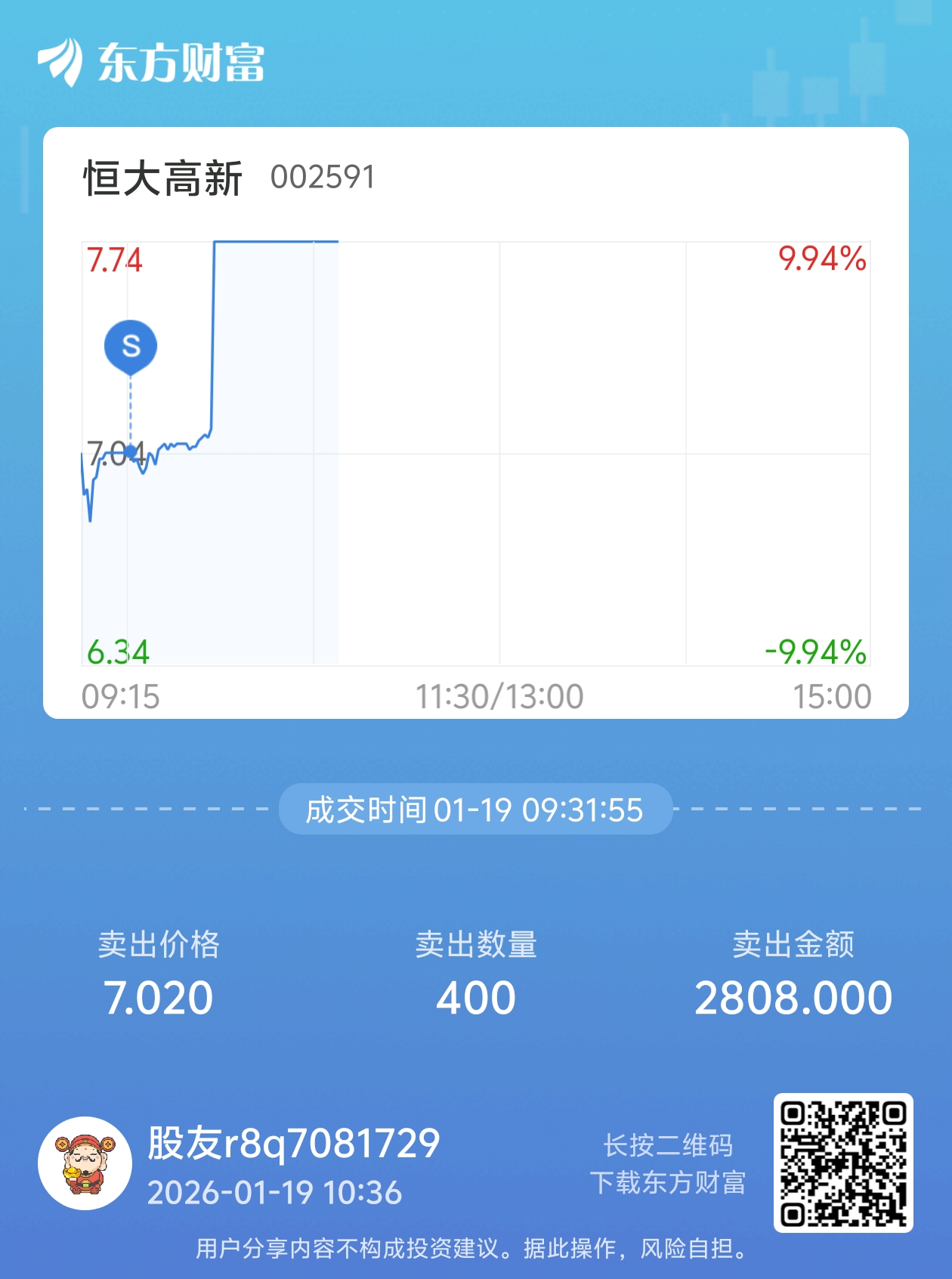 温馨提示: 1.根据《证券法》规定,禁止编造、传播虚假信息或者误导性信息,扰乱证券市场;2.用户在本社区发表的所有资料、言论等仅代表个人观点,与本网站立场无关,不对您构成任何投资建议。用户应基于自己的独立判断,自行决定证券投资并承担相应风险。《东方财富社区管理规定》