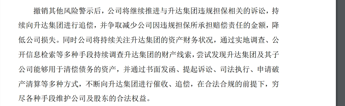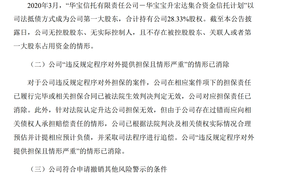公司只要第三个判决担保合同无效,计提了损失,那么就可以申请摘帽,无需追回款项。具