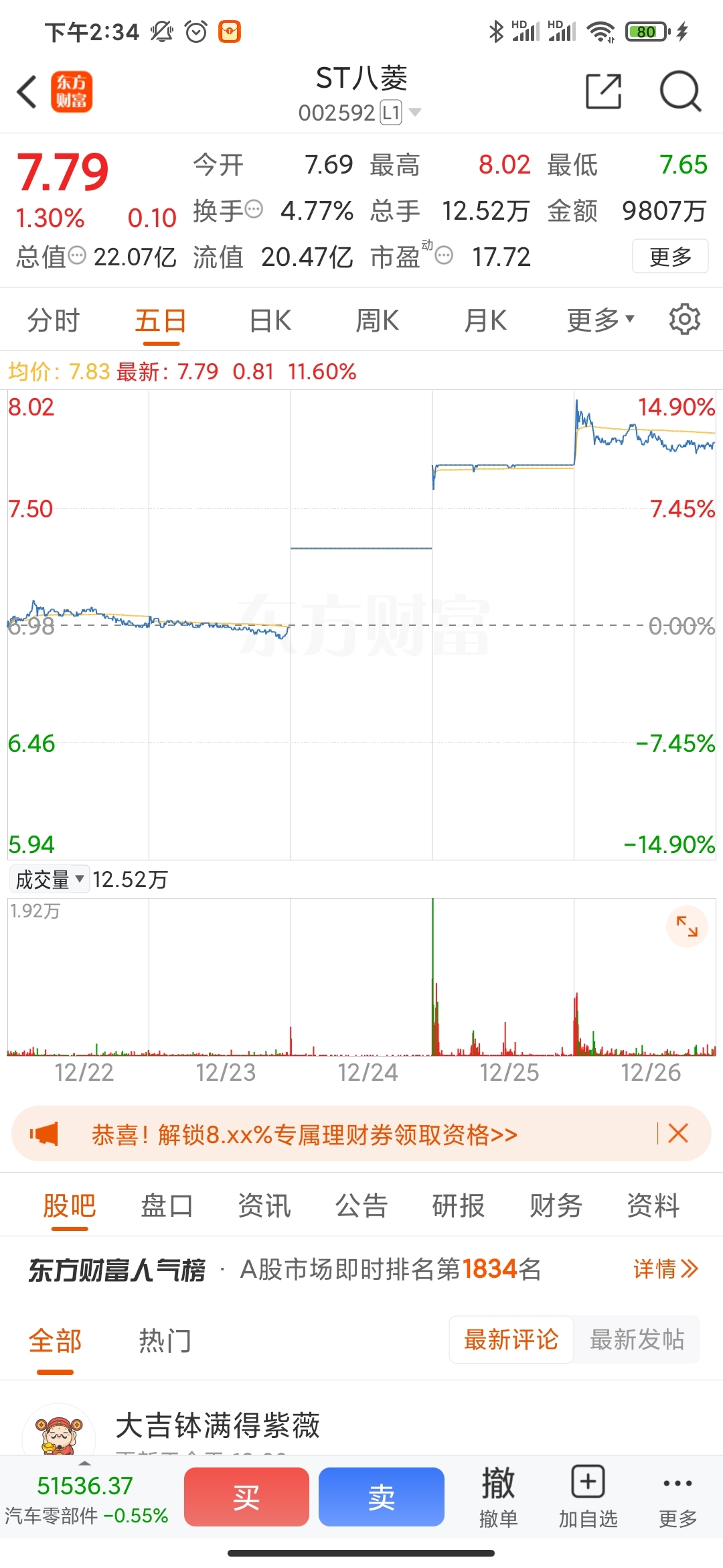 温馨提示: 1.根据《证券法》规定,禁止编造、传播虚假信息或者误导性信息,扰乱证券市场;2.用户在本社区发表的所有资料、言论等仅代表个人观点,与本网站立场无关,不对您构成任何投资建议。用户应基于自己的独立判断,自行决定证券投资并承担相应风险。《东方财富社区管理规定》