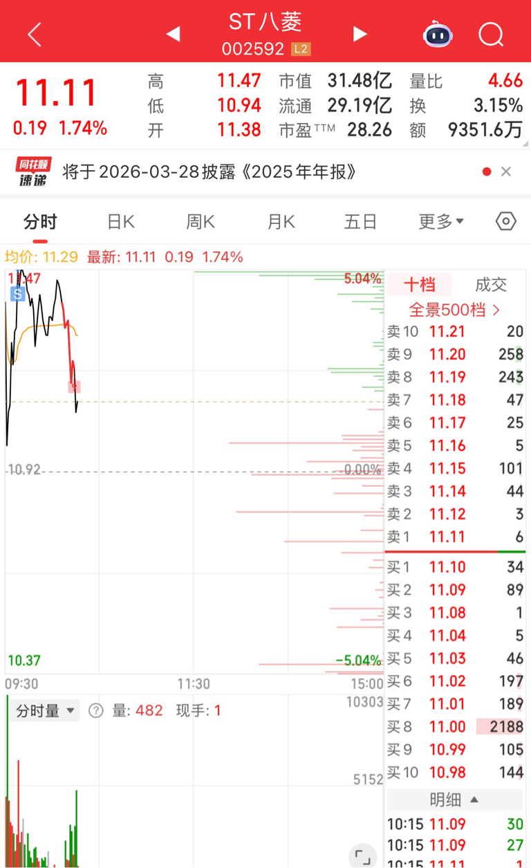 $ST八菱(SZ002592)$ 涨停板出了,看看还能接回吧朋友们