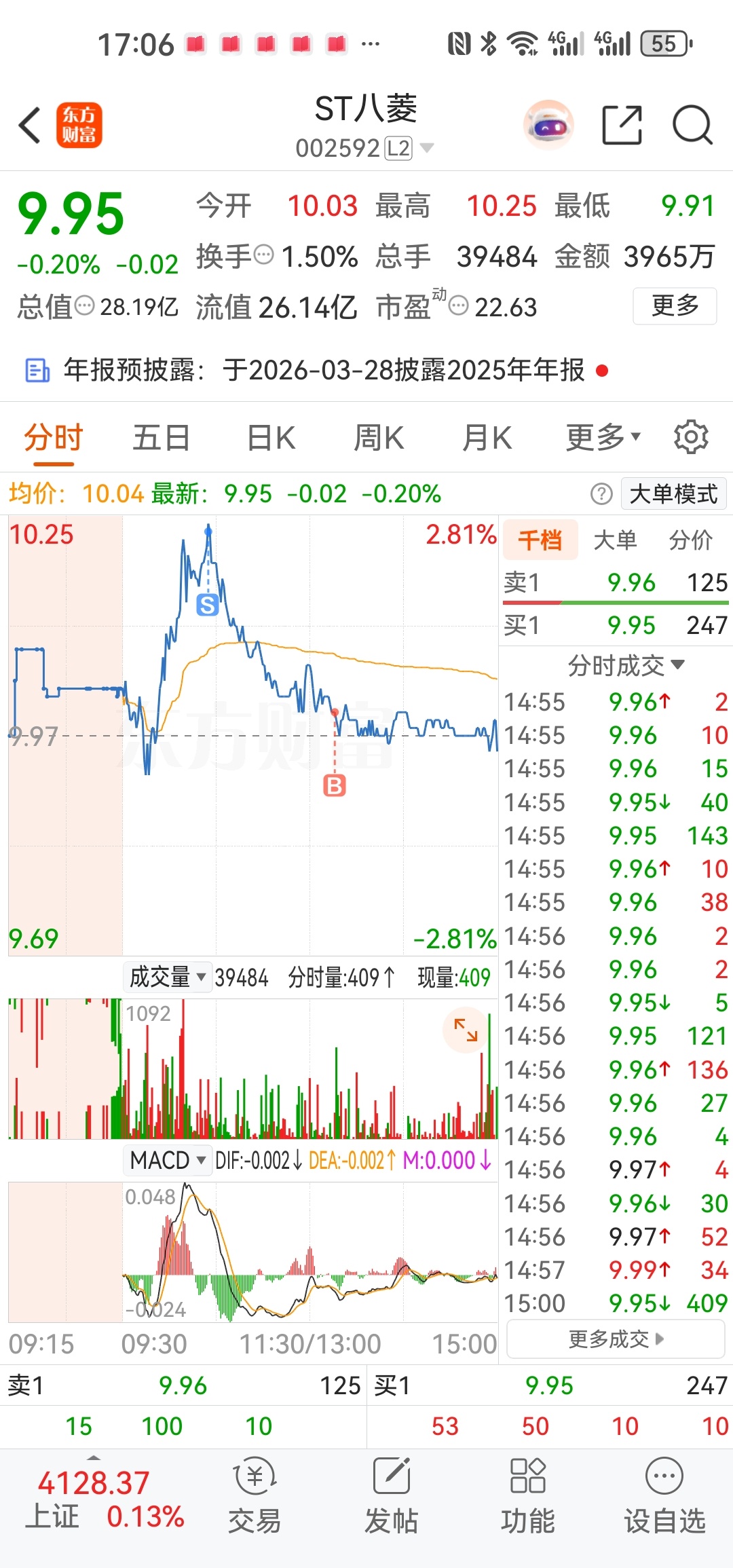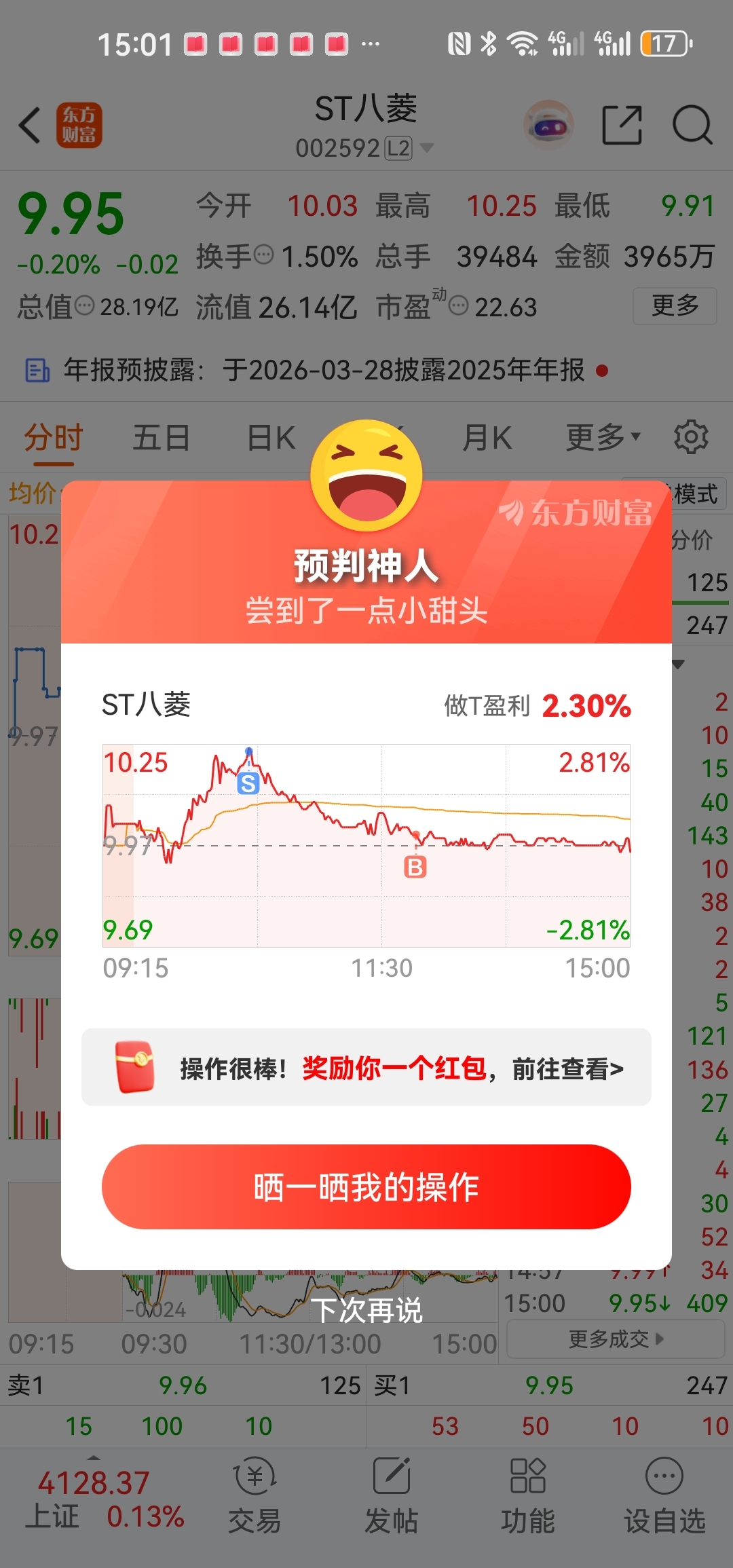 10.23红盘割,10.00红盘买。还是搞错了:因为要红盘抛,绿盘才买