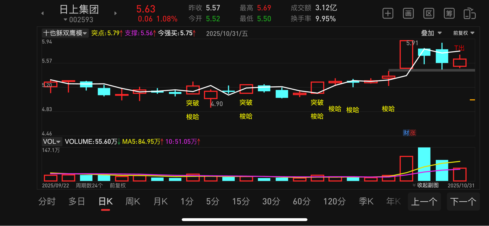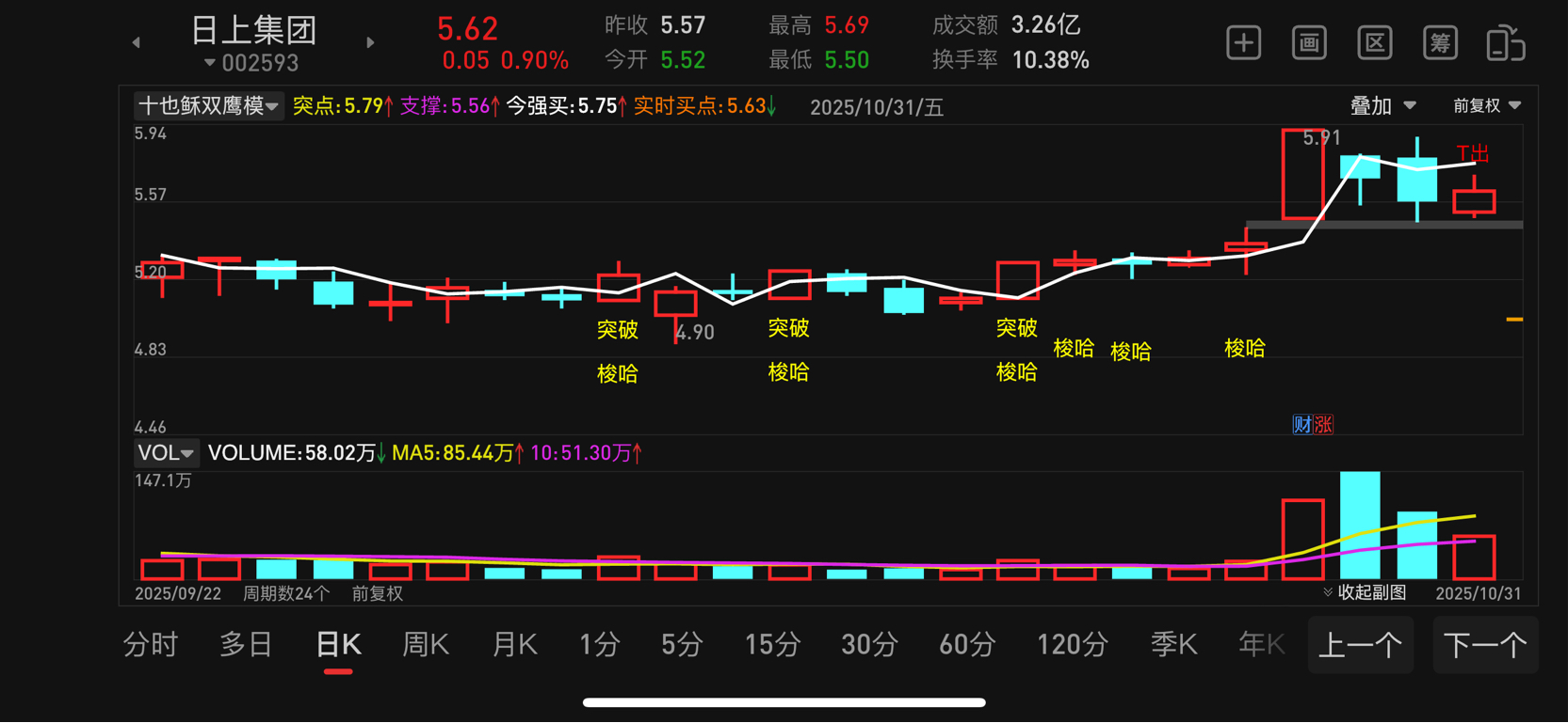 日上5.75都站不上,没戏了,下周一又得割了