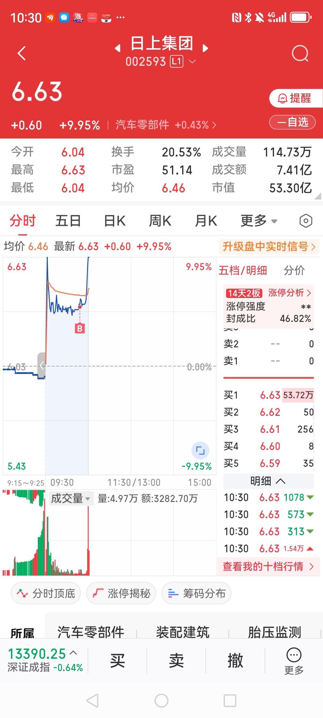 $日上集团(SZ002593)$ 唉,跑来跑去瞎跑把成本跑高了好多!本来之前是还不到6块的成本!下周连续涨停吧!这次别再玩我了!
