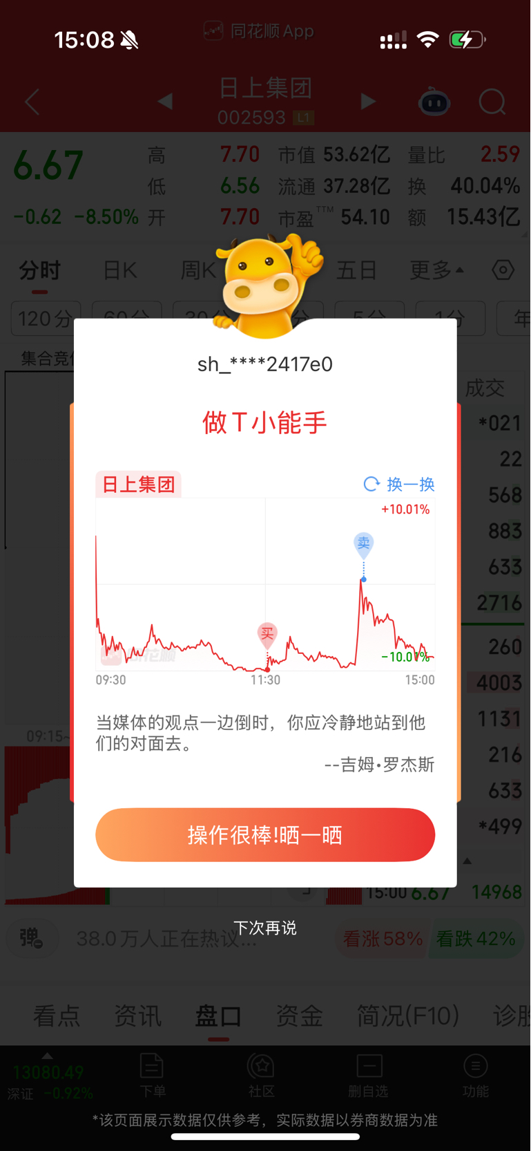 温馨提示: 1.根据《证券法》规定,禁止编造、传播虚假信息或者误导性信息,扰乱证券市场;2.用户在本社区发表的所有资料、言论等仅代表个人观点,与本网站立场无关,不对您构成任何投资建议。用户应基于自己的独立判断,自行决定证券投资并承担相应风险。《东方财富社区管理规定》