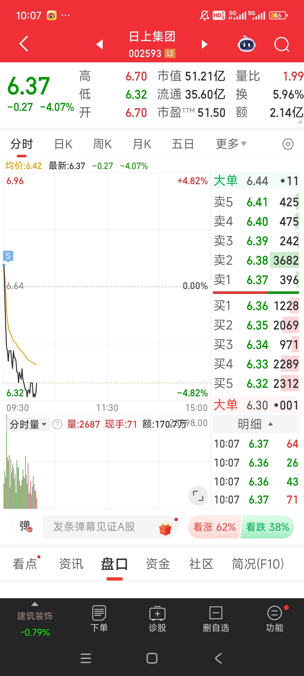 $日上集团(SZ002593)$ 福建板块集体回调,你也不例外,跟风的在退潮的时候更弱