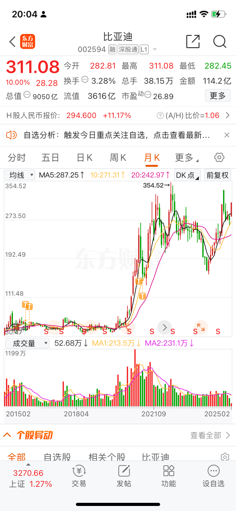 $比亚迪(SZ002594)$ 大家猜猜我赚了多少