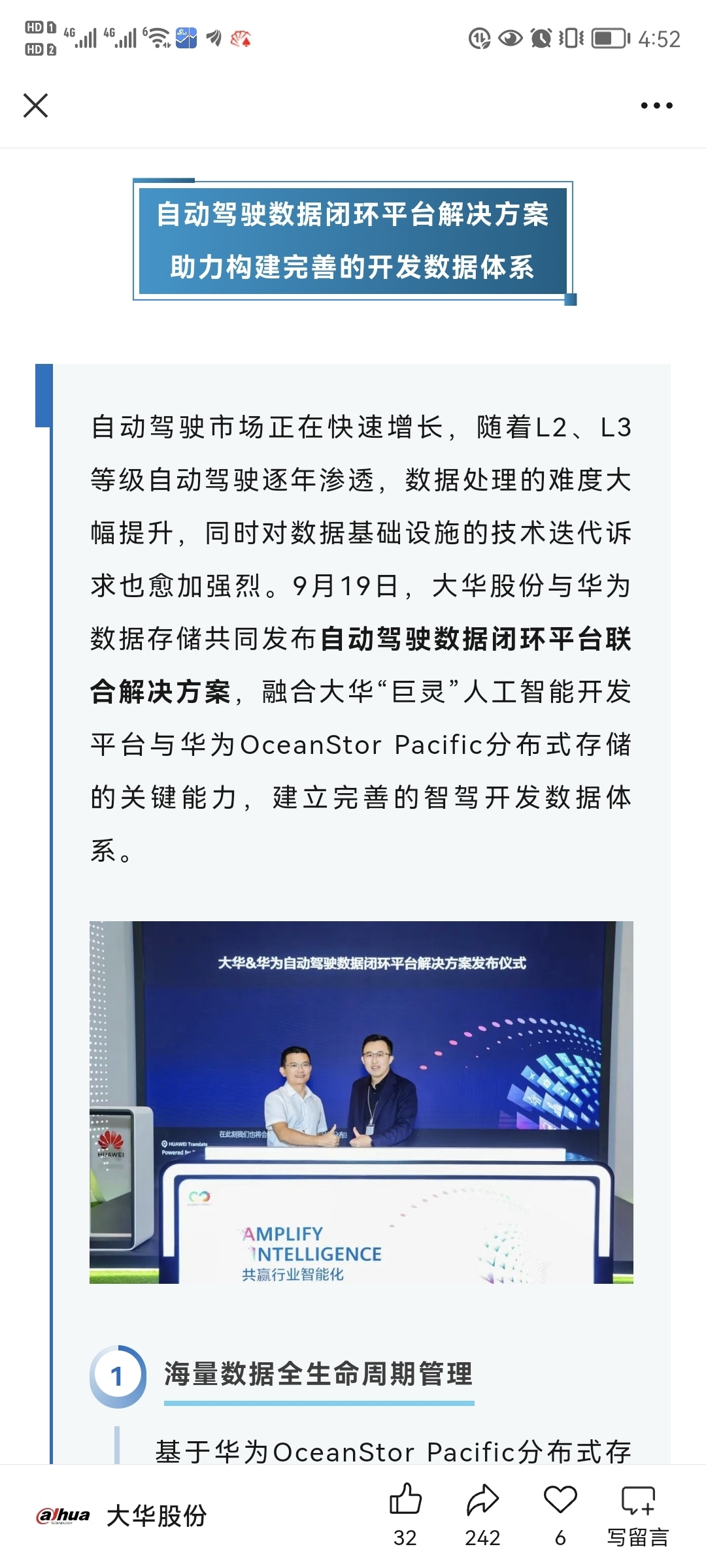 大华股份唯一底部没启动的且最正统的智能驾驶概念股(不仅和比亚迪合作也和华为合作)