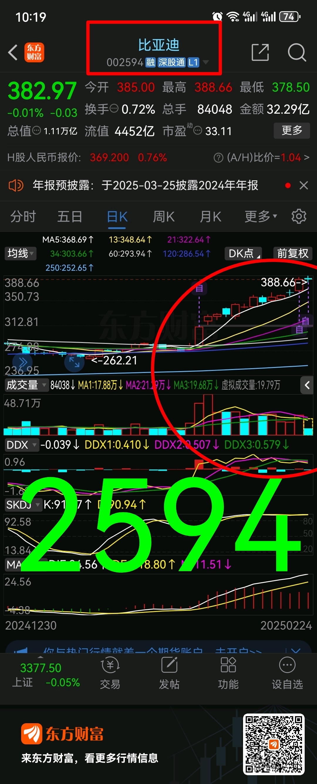 AH联动002594比亚迪如期再刷新高筹码略显松动短线来看刷出388.66元对子