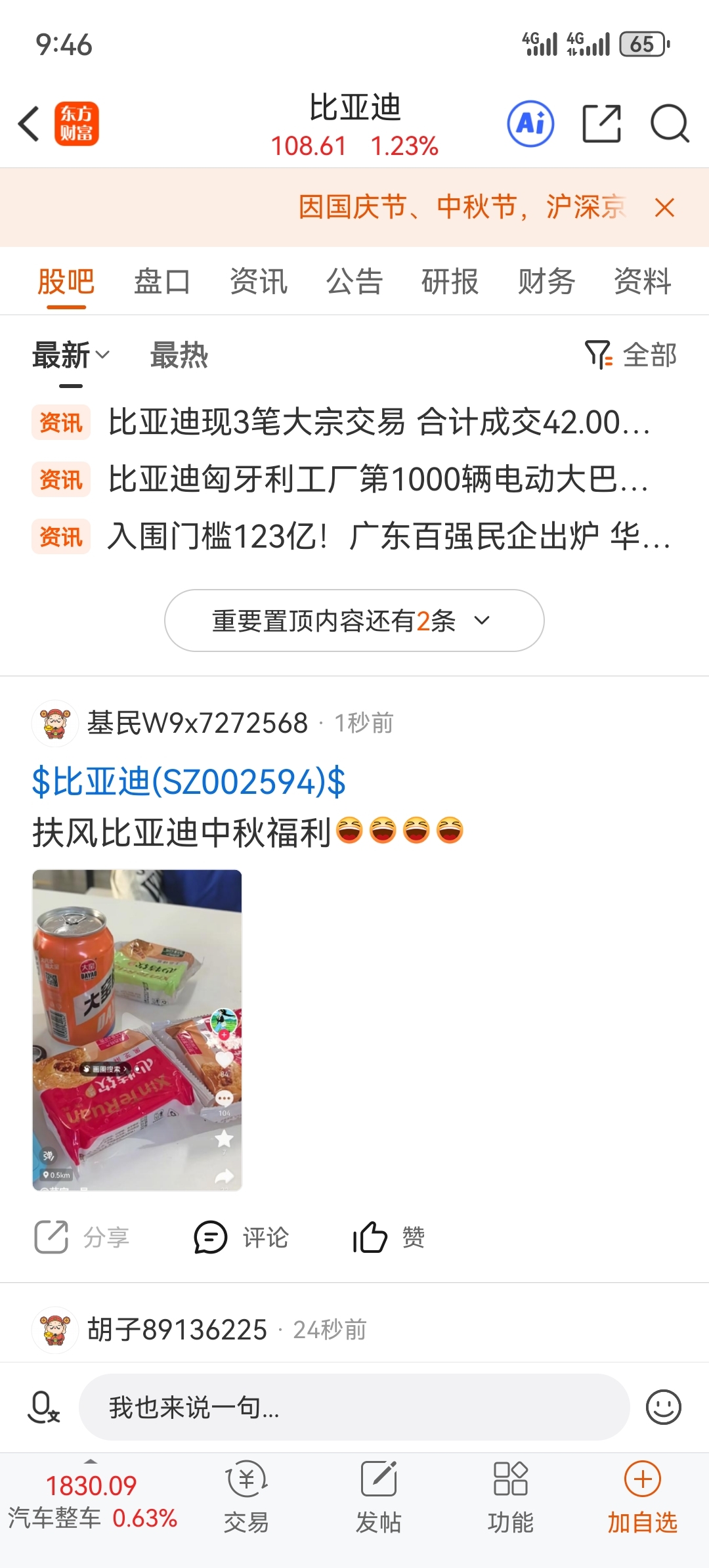 都来看看扶风比亚迪中秋福利,公司作为一个车企头部企业中秋发这,笑不活了