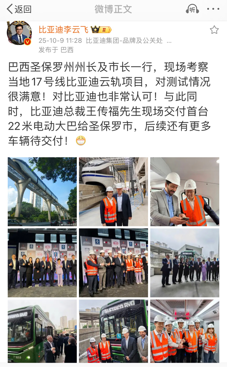 比亚迪在巴西圣保罗的云轨项目
