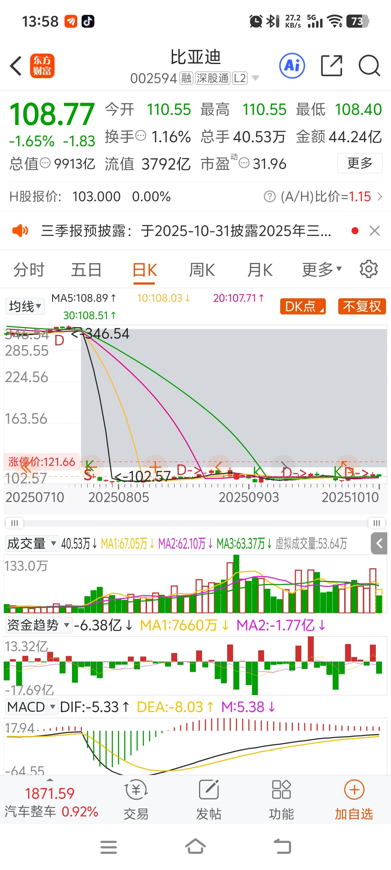 $比亚迪(SZ002594)$ 比亚迪什么情况,从7月300多掉到100多