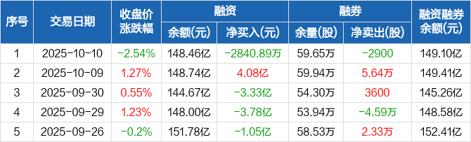 比亚迪:融资净偿还2840.89万元,融资余额148.46亿元(10-10)
