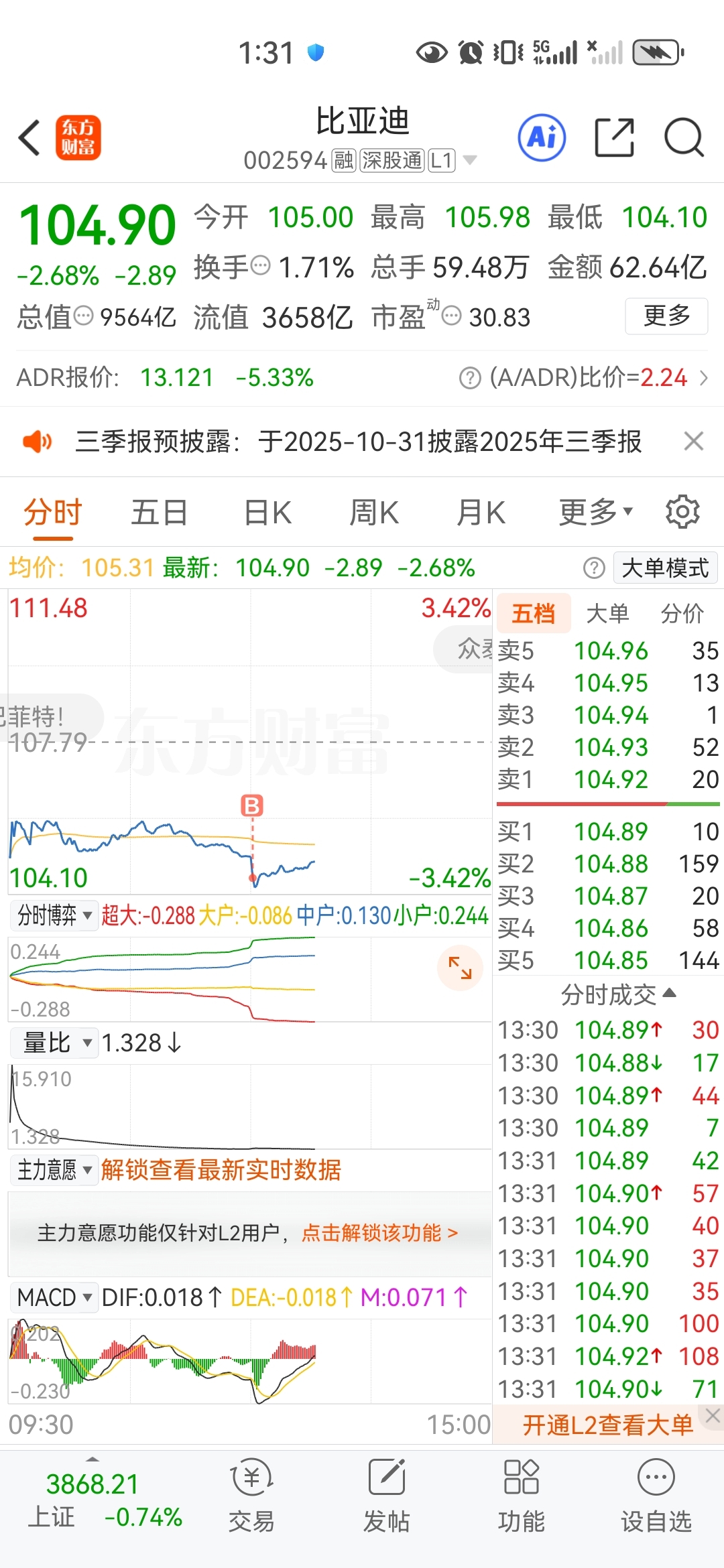 开心的斗着地主,打开软件一看,天塌了,我什么时候挂104.50买入了,还想明天再