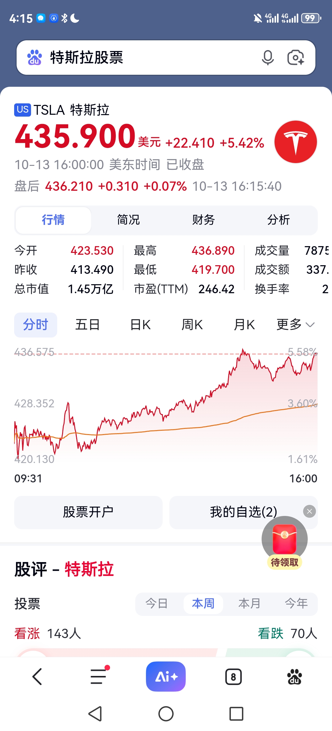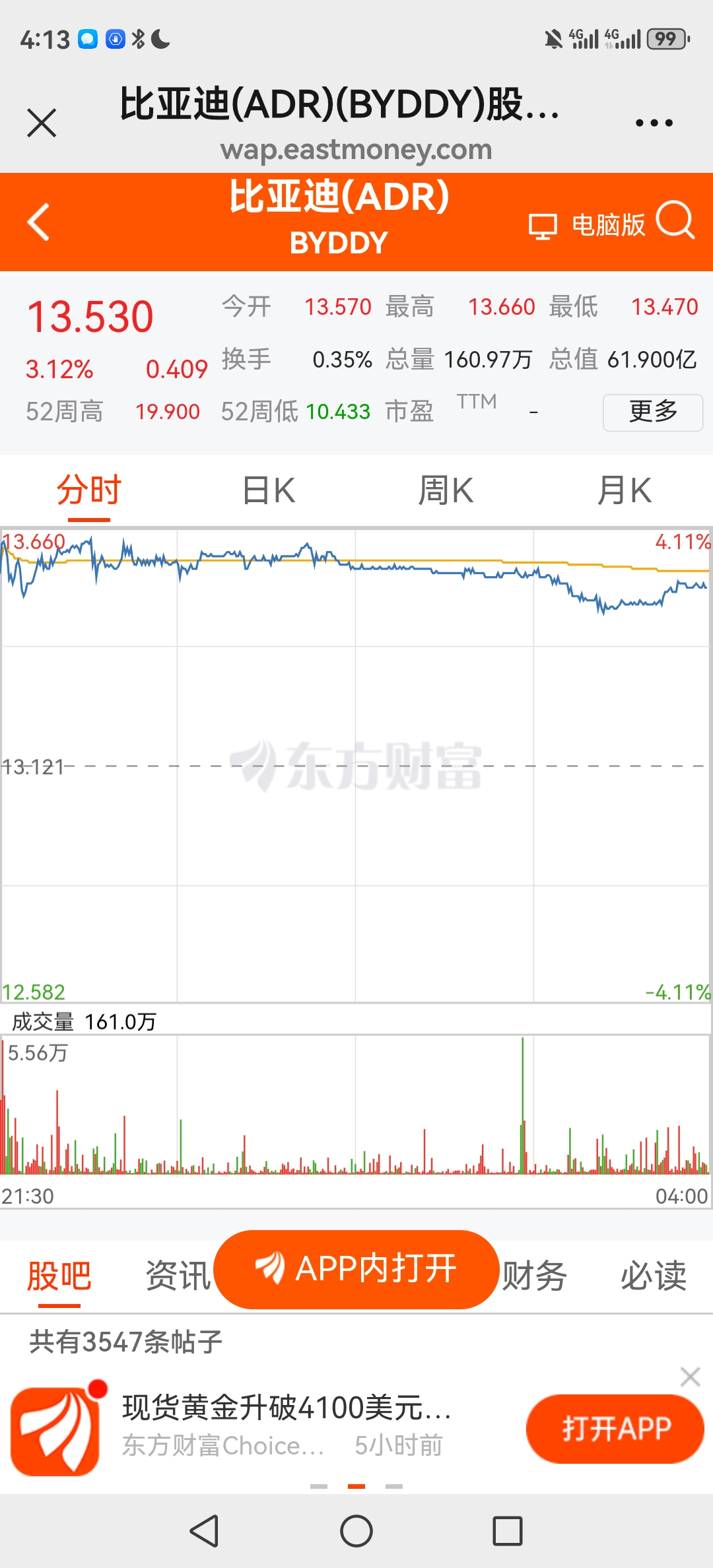 北京时间4月14号早上收盘。美国比亚迪和特斯拉均暴涨大涨!