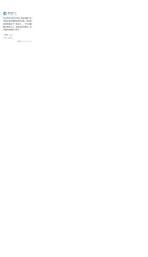 $比亚迪(SZ002594)$ 市场忽略了比亚迪在电池领域的技术优势。把比亚迪仅仅看成了一家车企……宁王市值接近两万亿了,就电池技术而言,比亚迪就应该有1.5万亿。