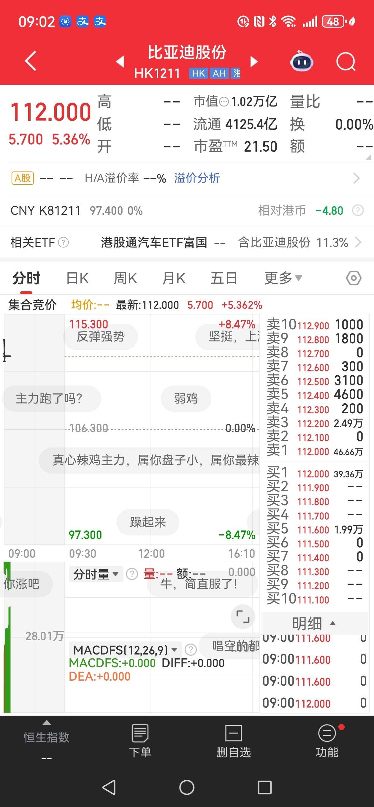 $比亚迪(SZ002594)$ 今天罕见比亚迪股份竞价大幅高开,这传递正能量满满啊。