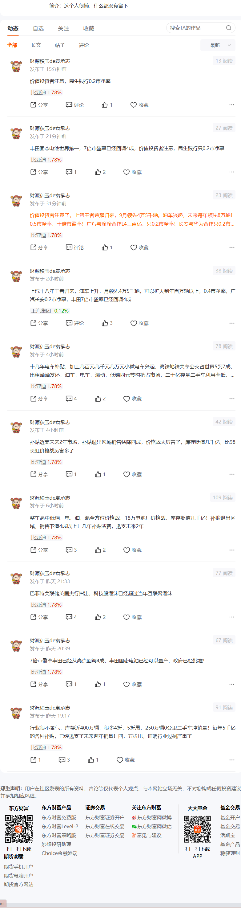 温馨提示: 1.根据《证券法》规定,禁止编造、传播虚假信息或者误导性信息,扰乱证券市场;2.用户在本社区发表的所有资料、言论等仅代表个人观点,与本网站立场无关,不对您构成任何投资建议。用户应基于自己的独立判断,自行决定证券投资并承担相应风险。《东方财富社区管理规定》