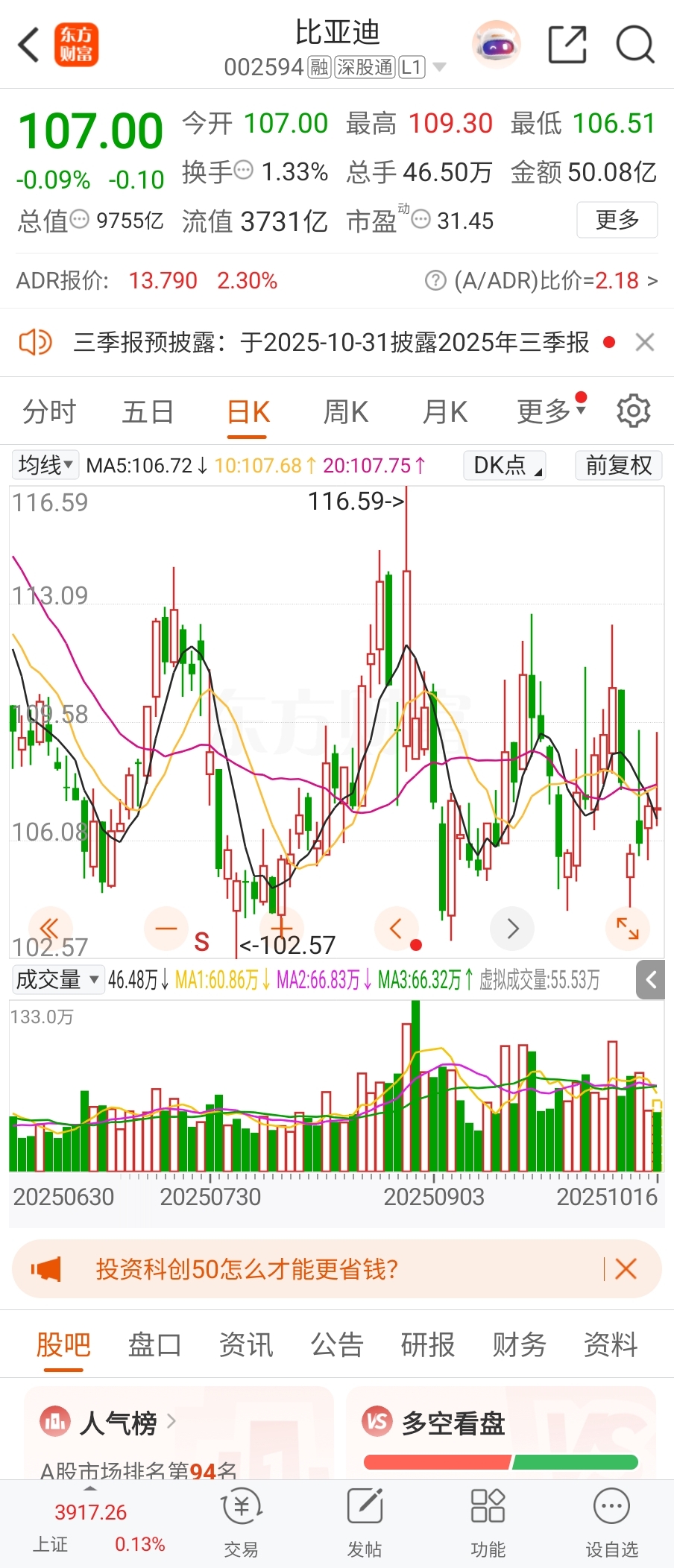 $比亚迪(SZ002594)$ 你Y上辈子是不是练驴皮影儿的啊
