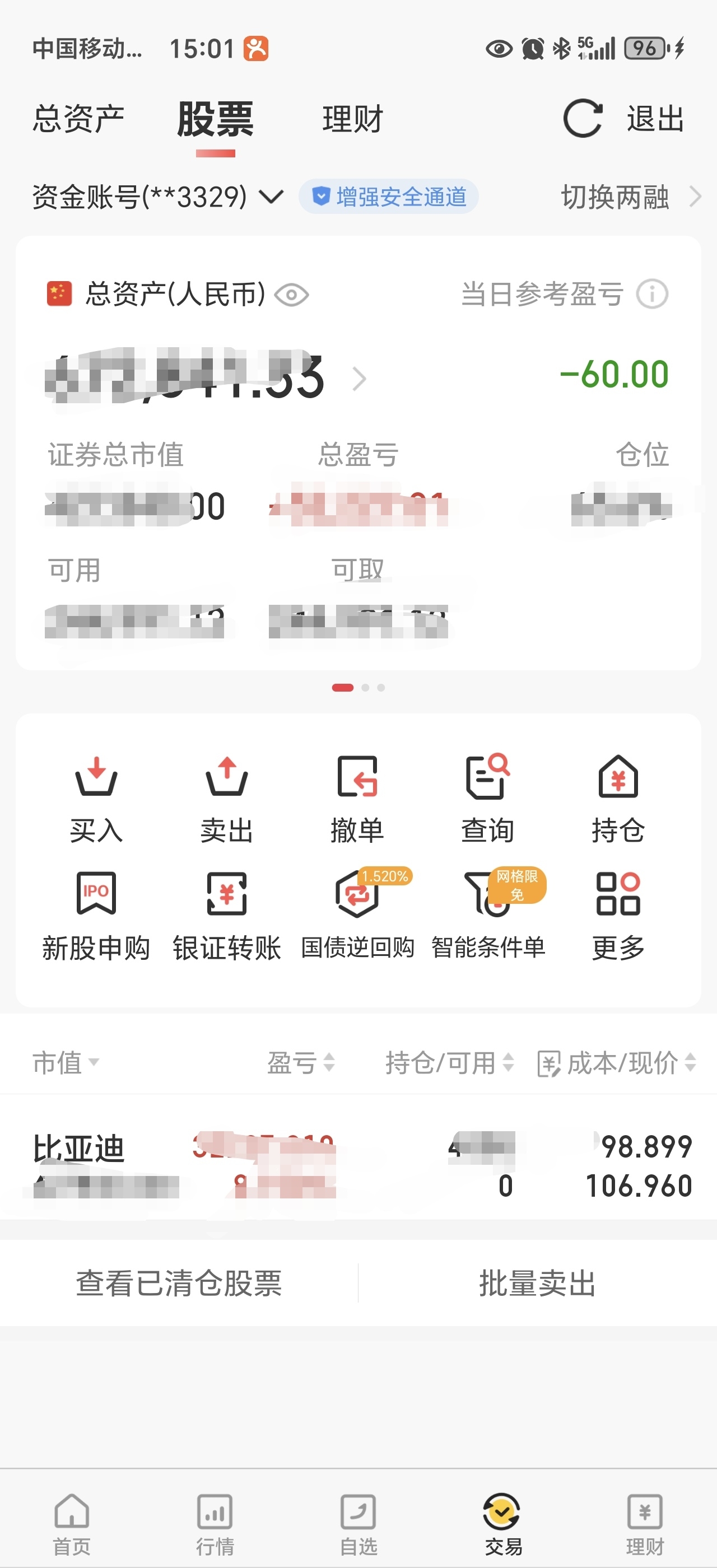 $比亚迪(SZ002594)$ 今天没操作好,怒亏60