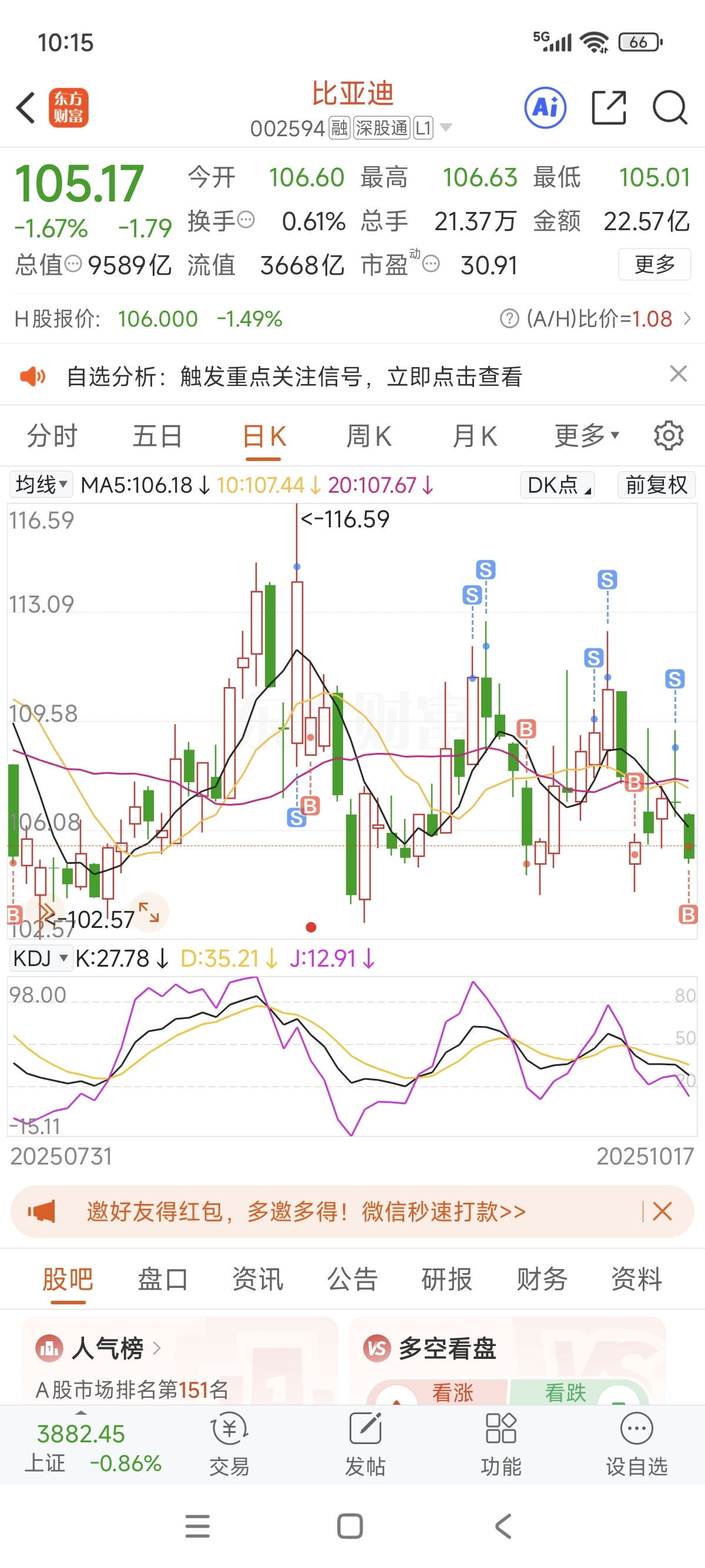 $比亚迪(SZ002594)$ 这种走法还是做t吧,蚊子腿也是肉