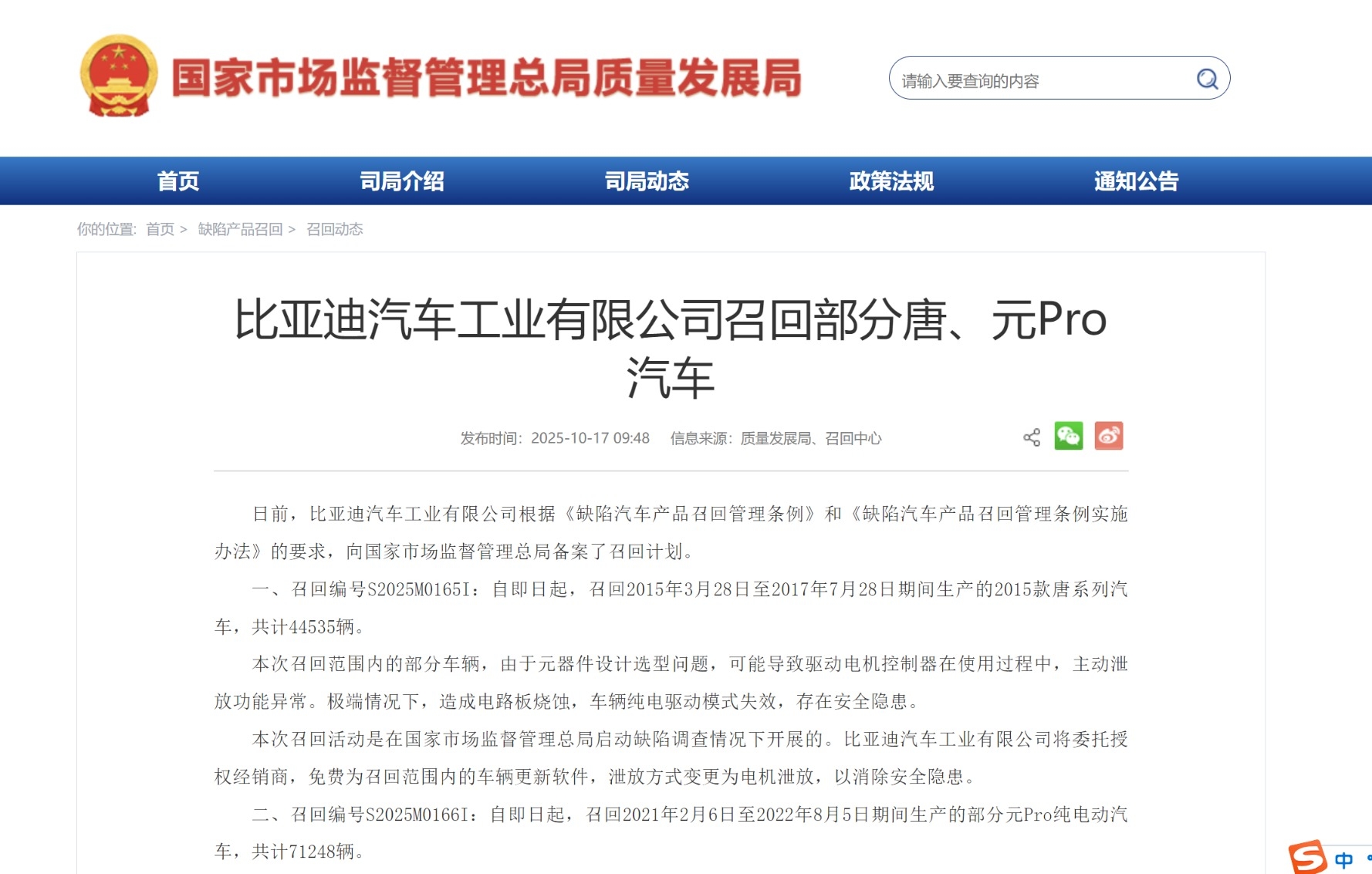 冷知识:本次召回末尾为I,属于受调查影响召回,即被动召回,属于国家发现问题,要求
