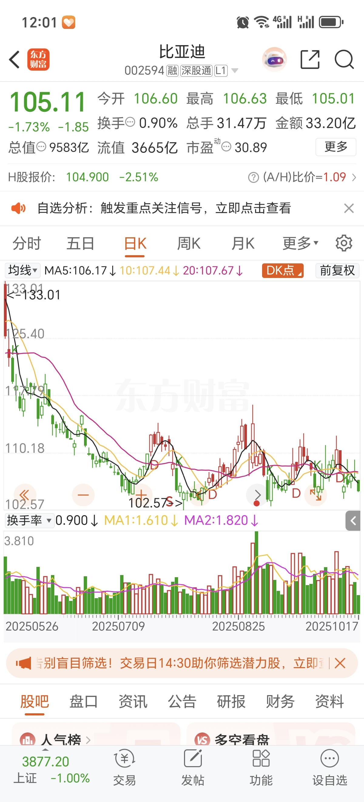 $比亚迪(SZ002594)$ 这股票太害人?已经在最低位了。还在跌