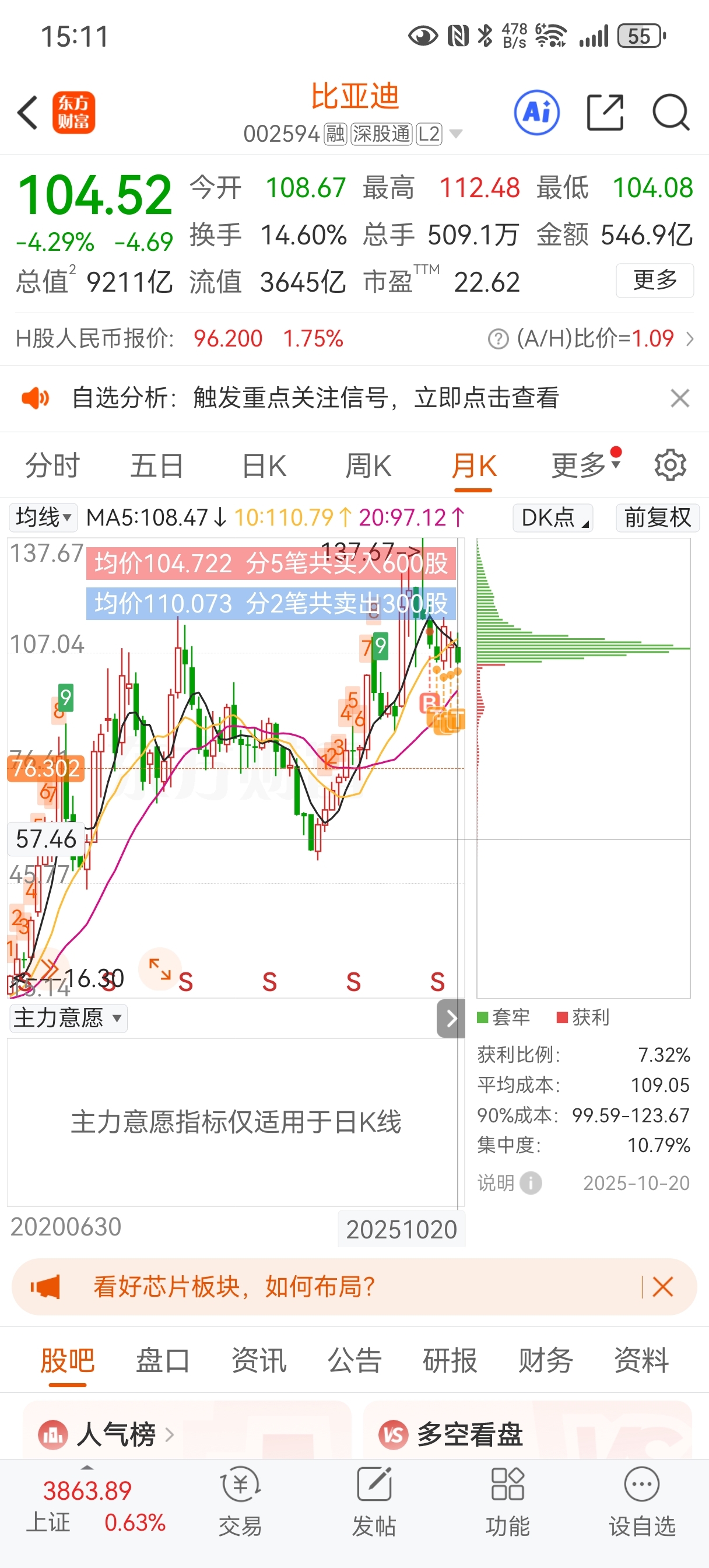 $比亚迪(SZ002594)$ $比亚迪(SZ002594)$ 搞不懂迪子的波动这么好做,你的成本怎么会这么高的奸笑