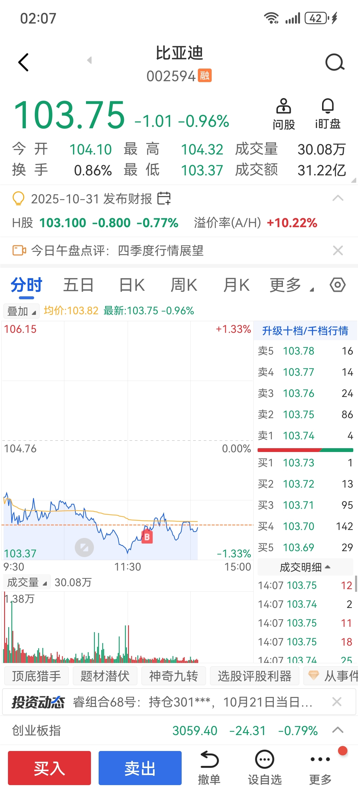 $比亚迪(SZ002594)$ 我干进来了,你别跌了