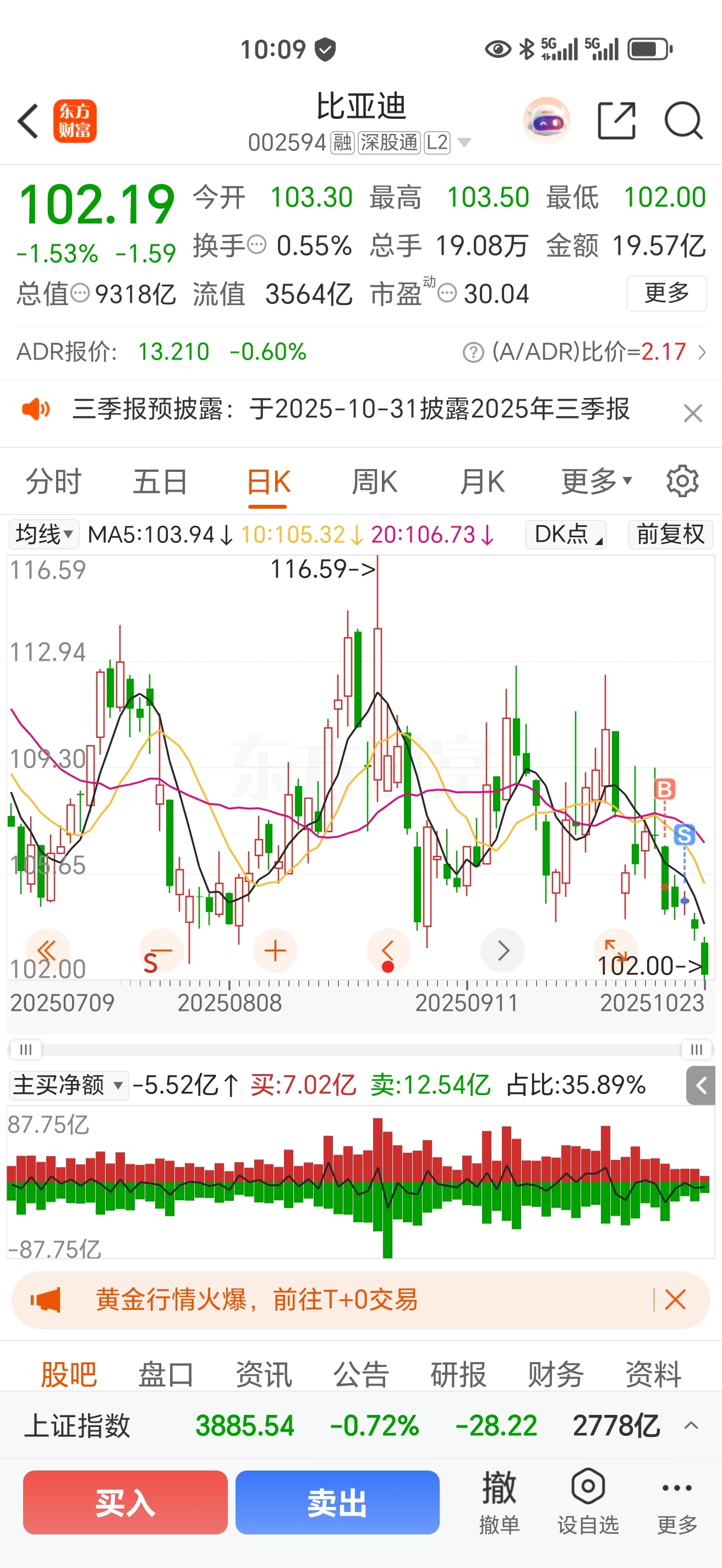 $比亚迪(SZ002594)$ 都怪我买了下,跌破了