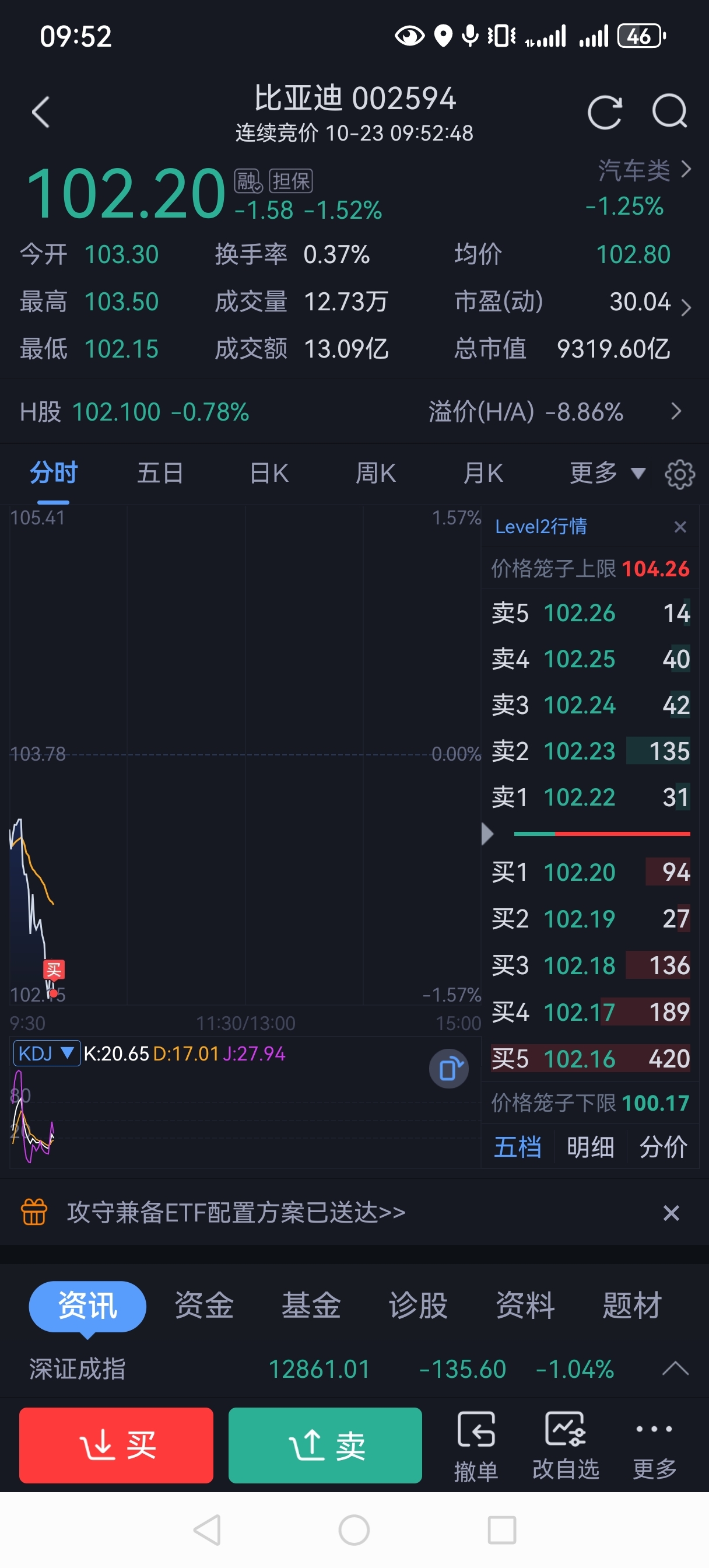 $比亚迪(SZ002594)$ 102.25头脑一热冲了。不知道吃肉还是割肉