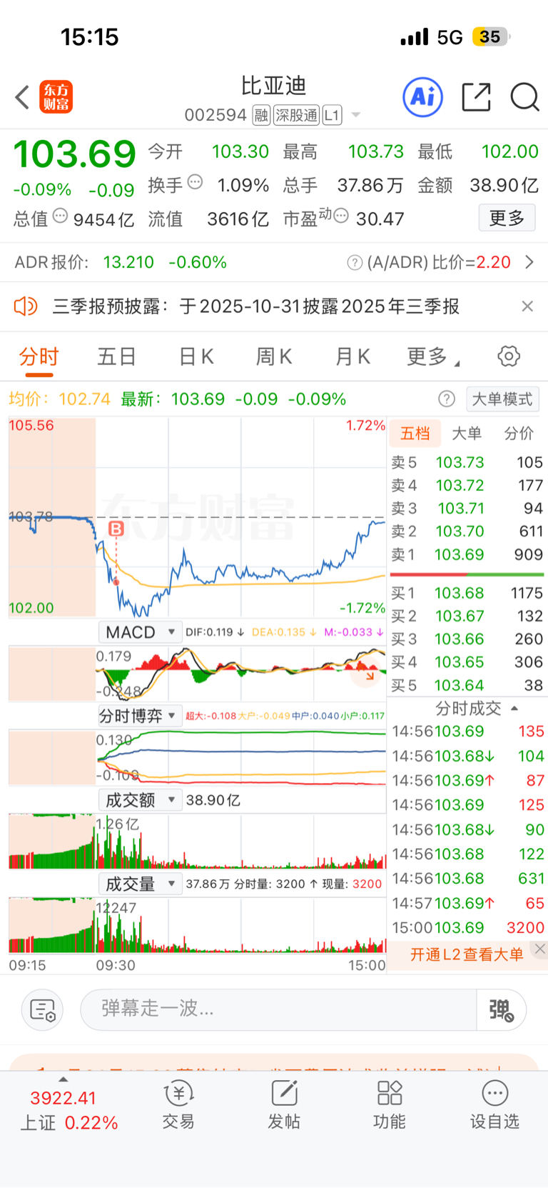 继清仓银行ETF后,第一笔操作买入迪子静待日线级别反弹!$比亚迪(SZ002594)$ #炒股日记# $银行ETF(SH512800)$