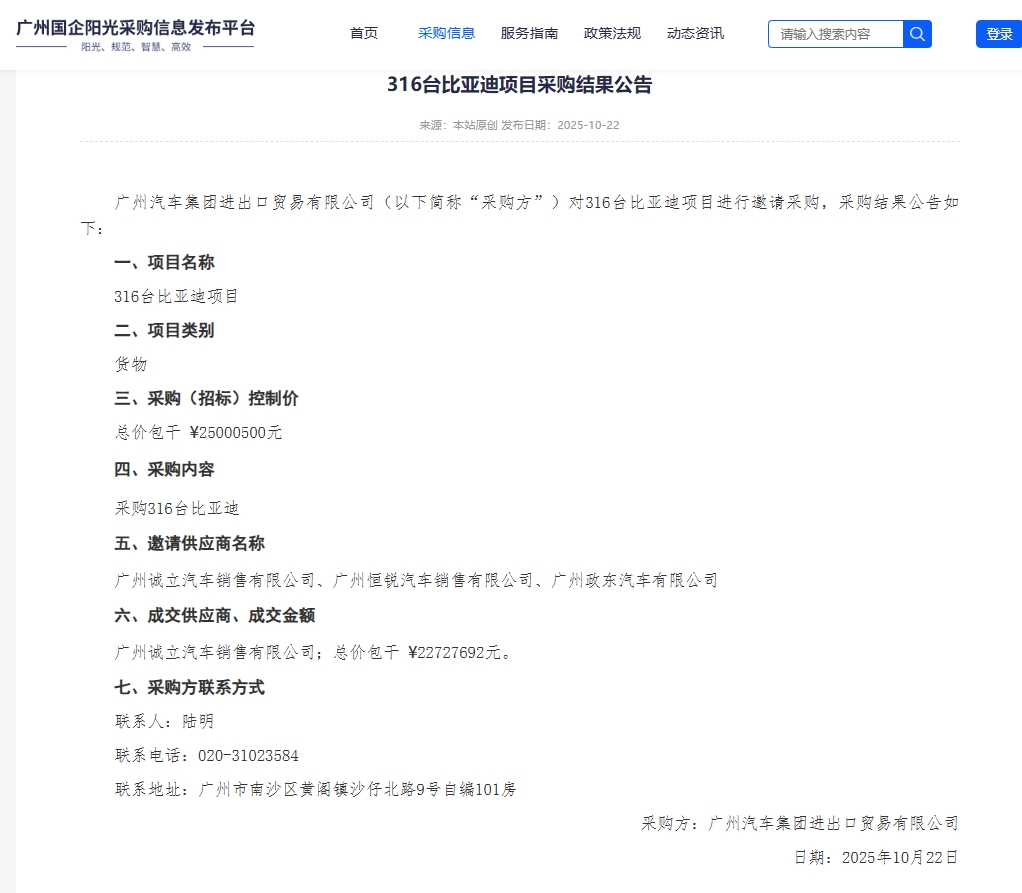 $比亚迪(SZ002594)$ $比亚迪股份-一百(HK|01211)$ 连广汽进出口贸易公司都觉得赚钱不寒碜,招标购买比亚迪,大概是用于出口吧,就挺离谱的,即使是用来当公务用车也离谱……资本市场对笛子是真不买账啊,国内外风评可能差的真大吧,但毕竟墙外咋样咱也不知道,但友商都买来出口是不是多少说明了海外需求的旺盛?