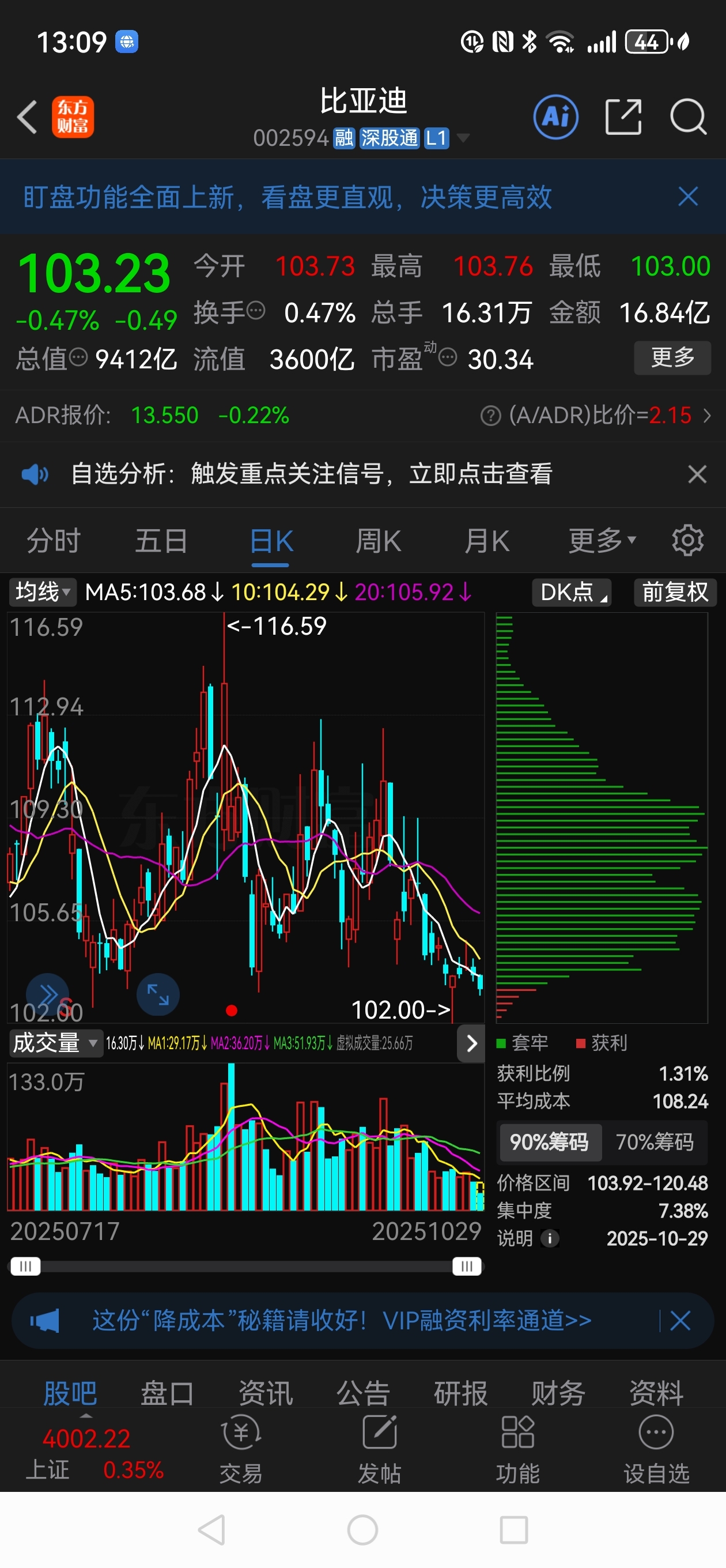$比亚迪(SZ002594)$ 明天晚上发布三季报业绩,再好的业绩也抵不过内耗带来的伤害。目前获利的人占比1.31%,只能待年报披露了。
