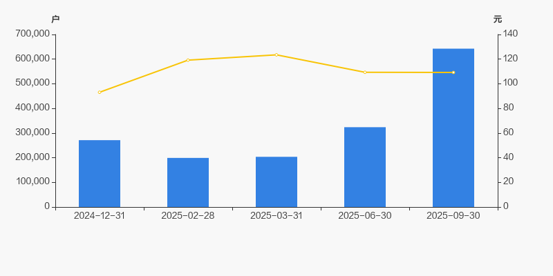 自2025年2月28日以来,公司股东户数连续3期上涨,截至目前增幅为222.55%。2025年2月28日至2025年9月30日区间股价下降8.37%。