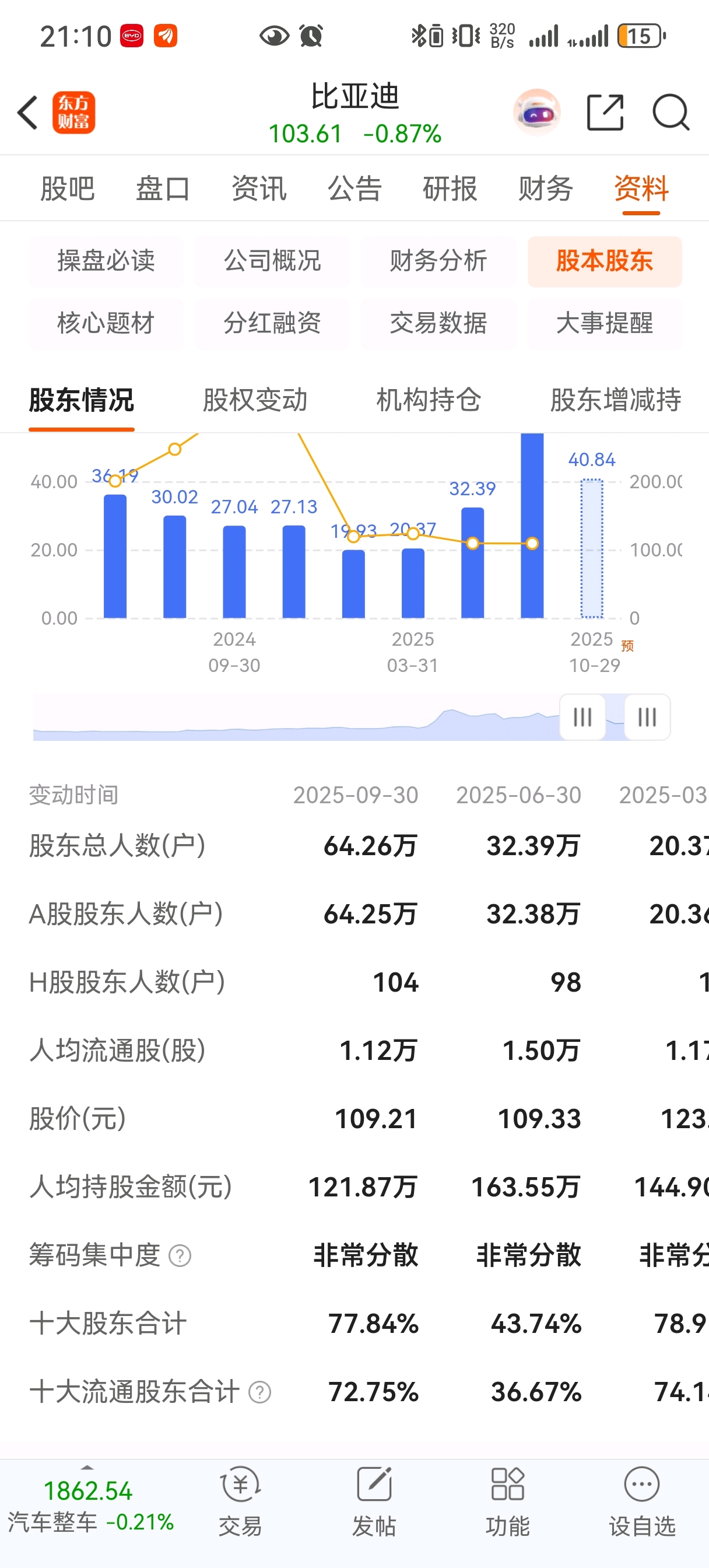$比亚迪(SZ002594)$ 这个股东人数,洗五年都洗不掉,真猜不到,转股后多了这么多的股东,说明大股东有人在出货的呀。