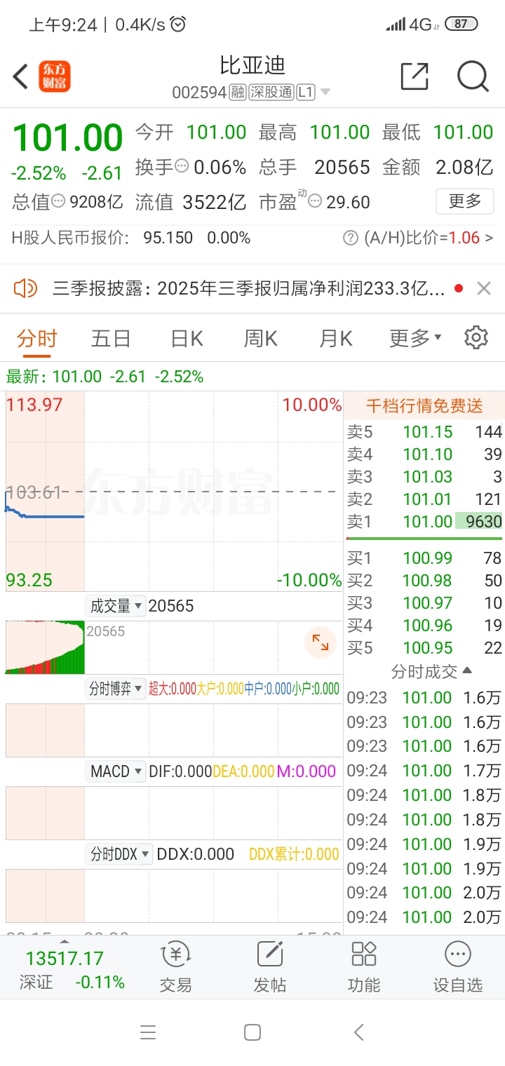 $比亚迪(SZ002594)$ 立帖为证,比亚迪跌破100元#炒股日记# #复盘记录# #强势机会# #实盘记录# #收盘点评#