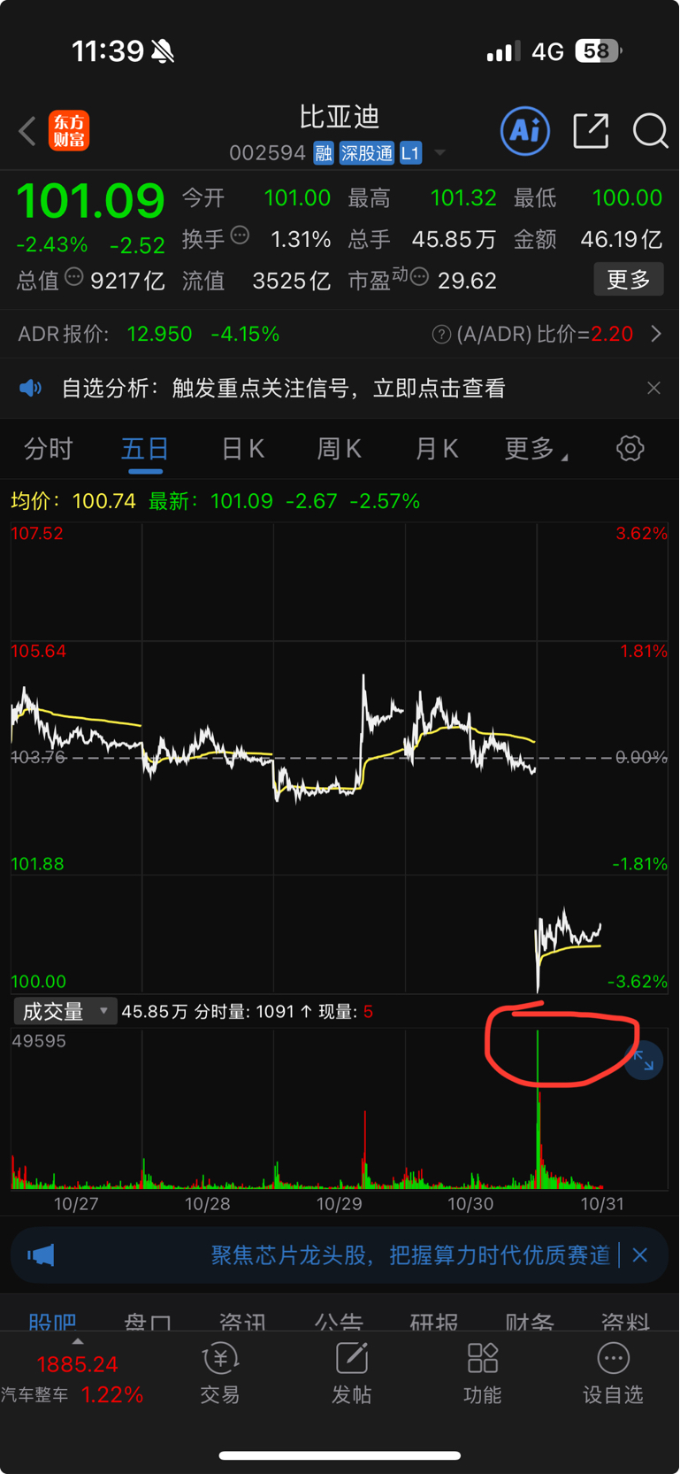 $比亚迪(SZ002594)$ 主力已悄悄的吸筹,割肉的死在黎明前
