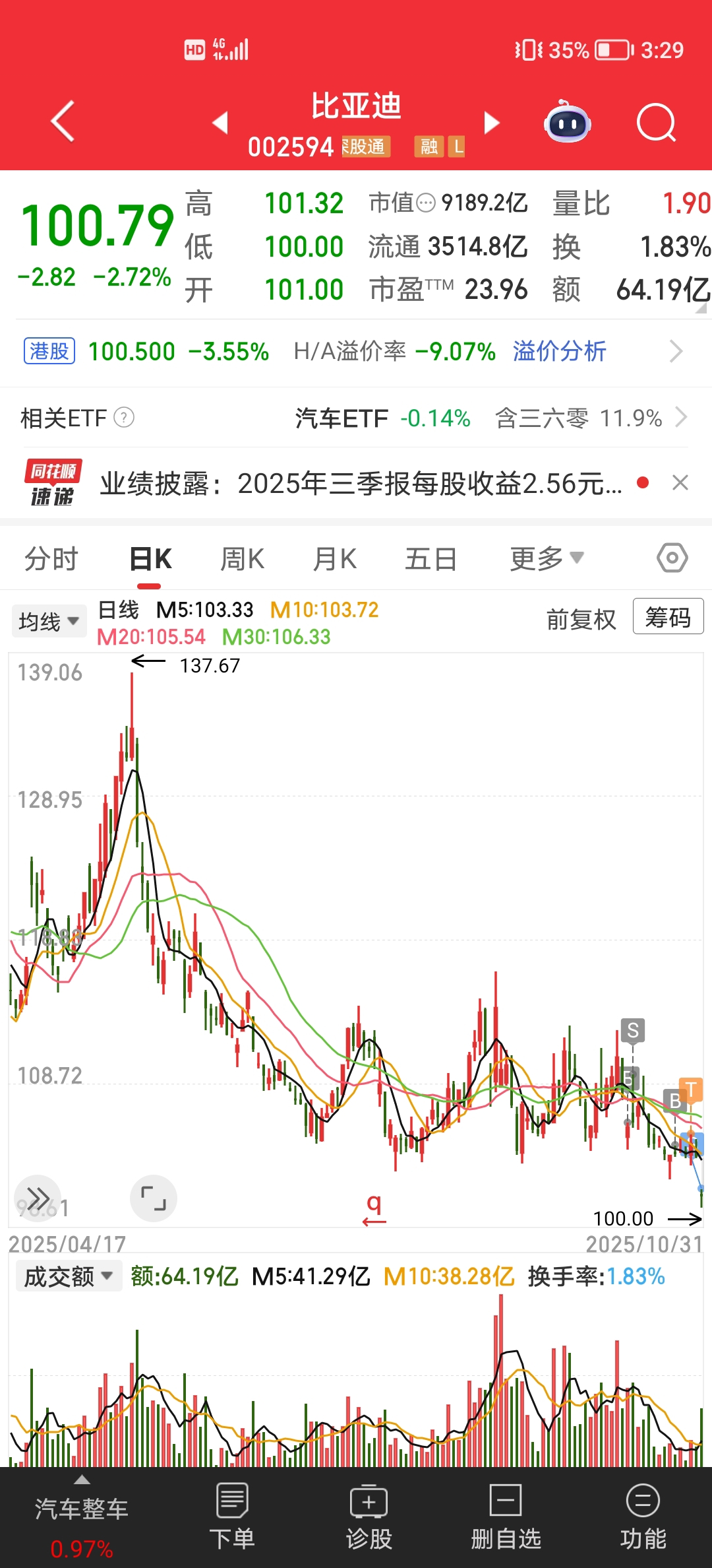 $比亚迪(SZ002594)$ 割肉了,最后一天给我惊吓到了,