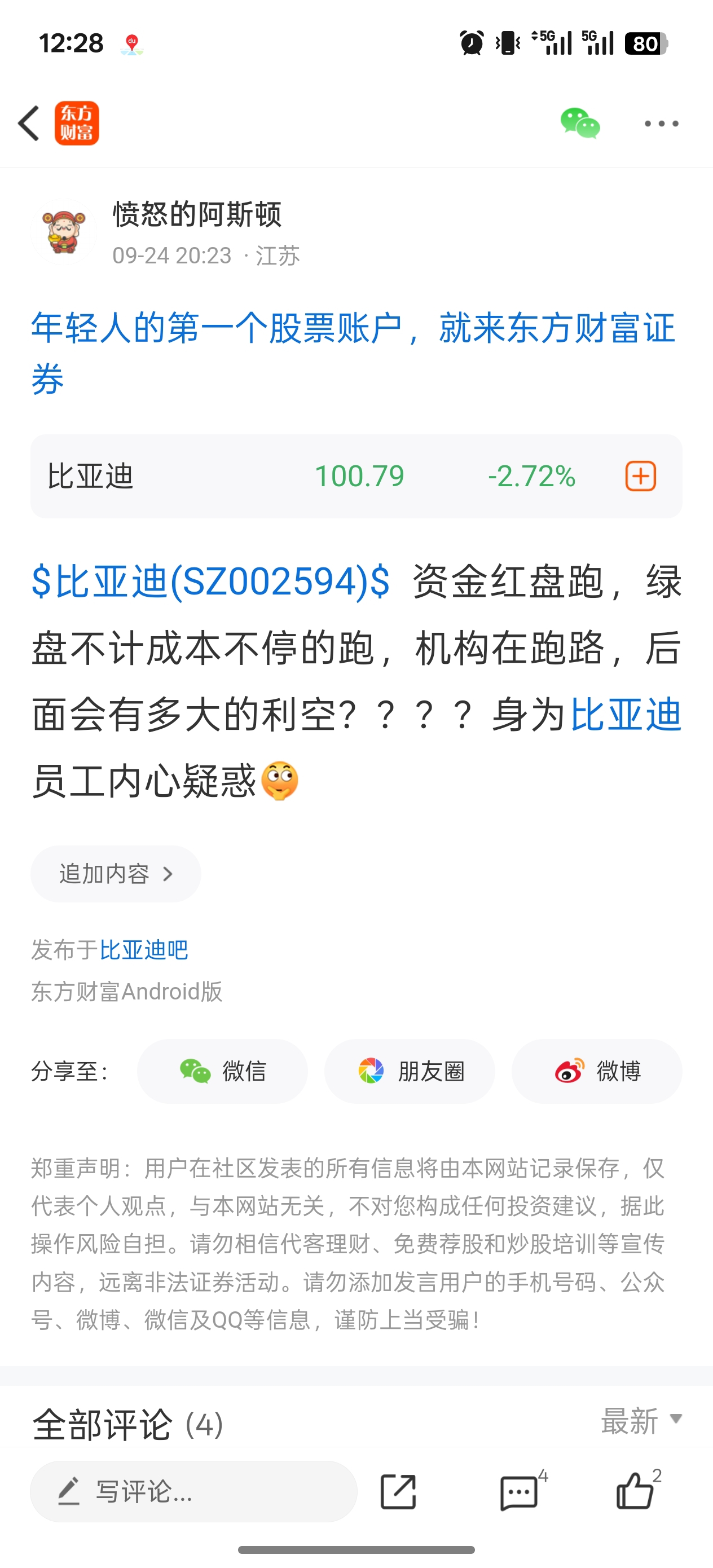 温馨提示: 1.根据《证券法》规定,禁止编造、传播虚假信息或者误导性信息,扰乱证券市场;2.用户在本社区发表的所有资料、言论等仅代表个人观点,与本网站立场无关,不对您构成任何投资建议。用户应基于自己的独立判断,自行决定证券投资并承担相应风险。《东方财富社区管理规定》