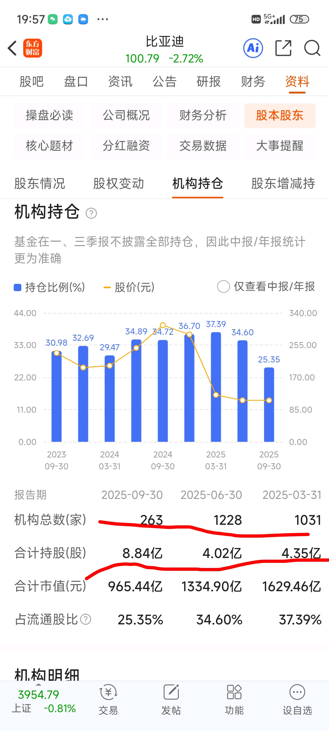 $比亚迪(SZ002594)$ 机构持股原来4亿股,除权后算变12亿股,现在还有8亿股,也就跑了三分之一,但都在一百到一百一十五之间波动。卖出的资金应该是为后期的拉升作准备的。