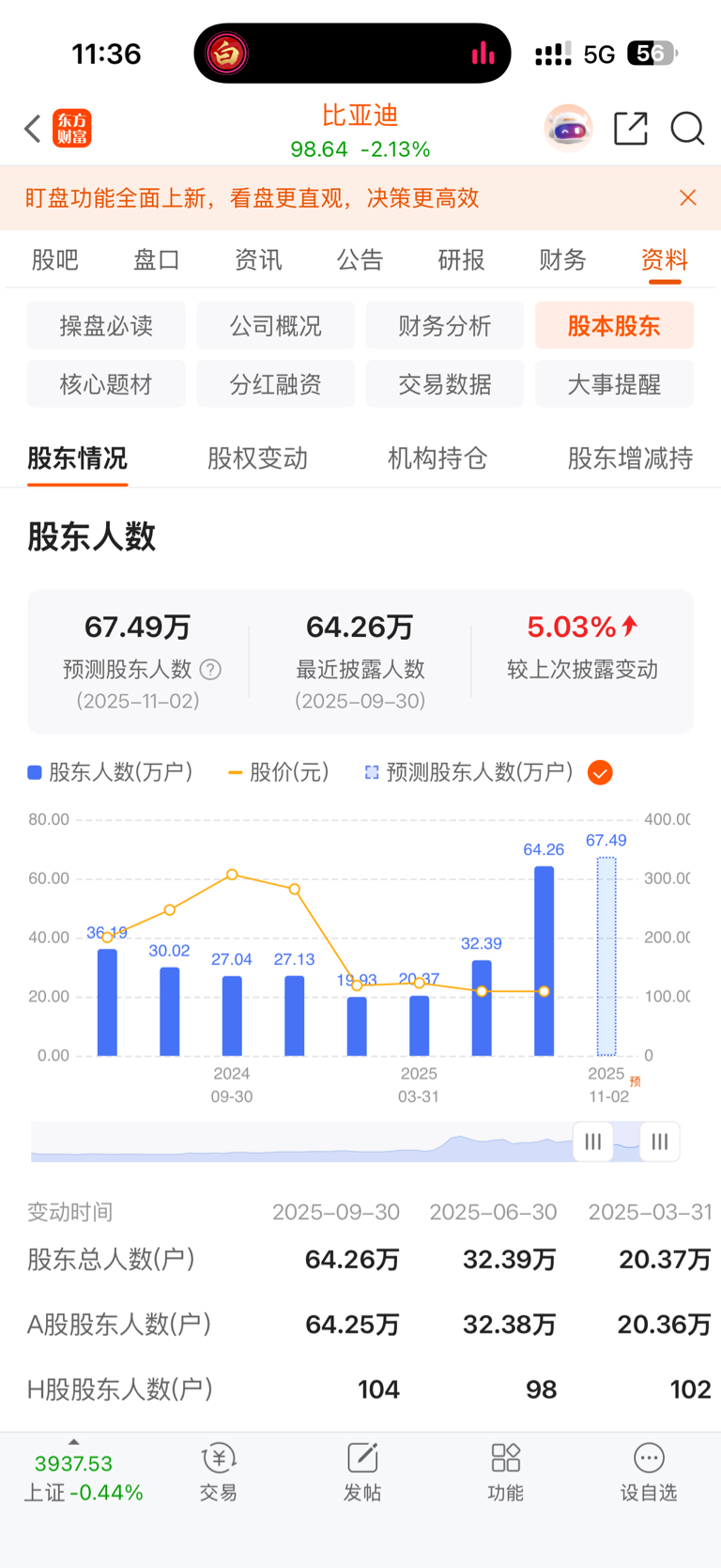 $比亚迪(SZ002594)$ 股东增加了30万,散户爹不死你