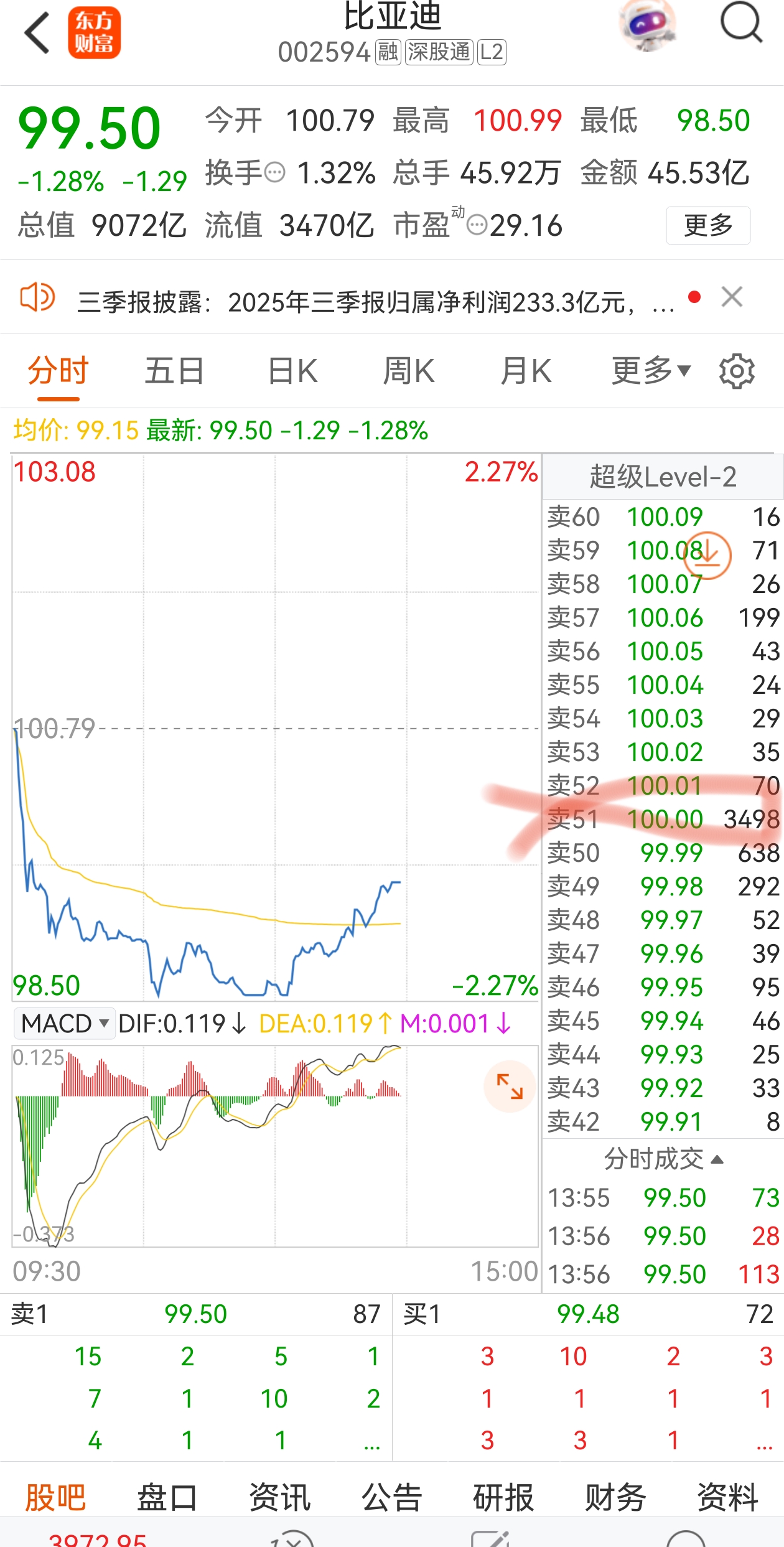 $比亚迪(SZ002594)$ 真狗,1000还压三千手。