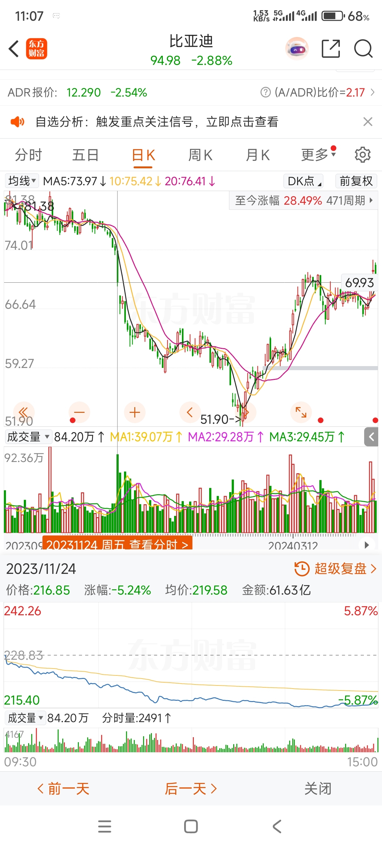 $比亚迪(SZ002594)$ 会不会还在20231124的位置