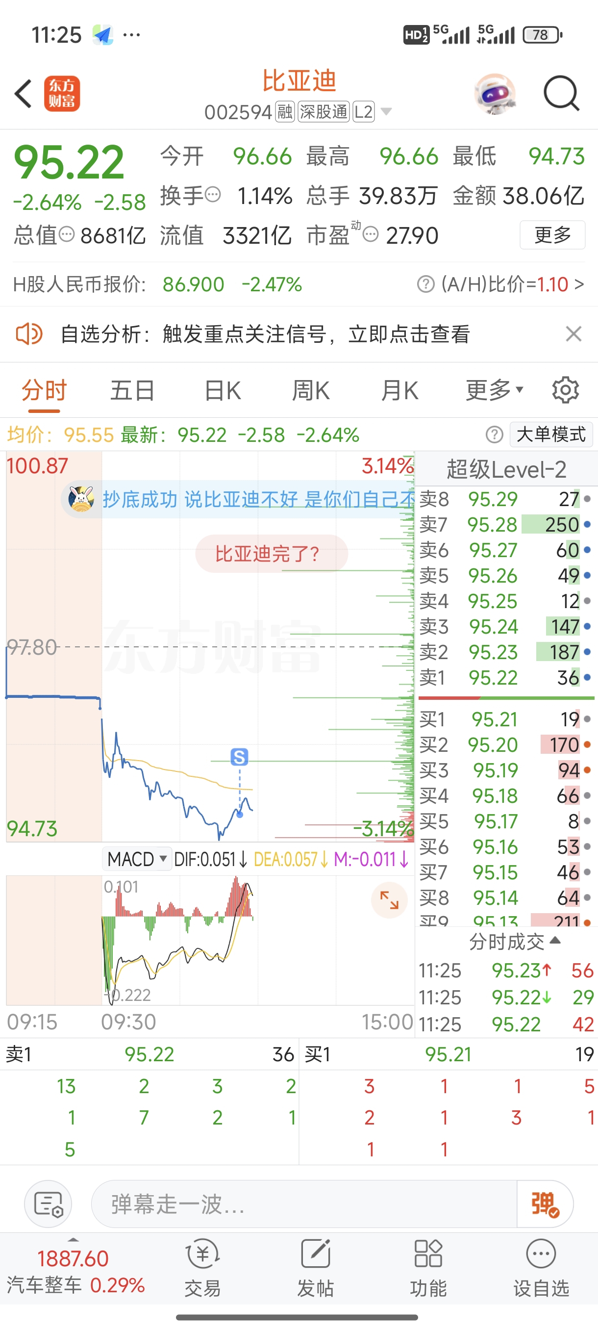 $比亚迪(SZ002594)$ 十个点割了,希望大涨,兄弟们赚钱