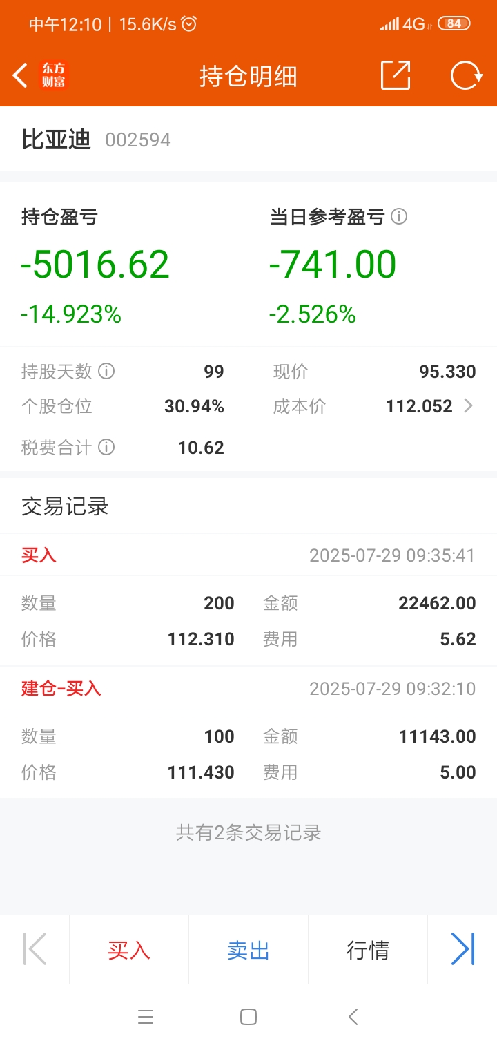 $比亚迪(SZ002594)$ 据说晒仓位可以让股价暴跌。求求你了,跌到80元吧。我要补仓。112买的。买高了,跌多点。我命令主力和机构。跌破80元!!!!#炒股日记# #复盘记录# #强势机会# #实盘记录#