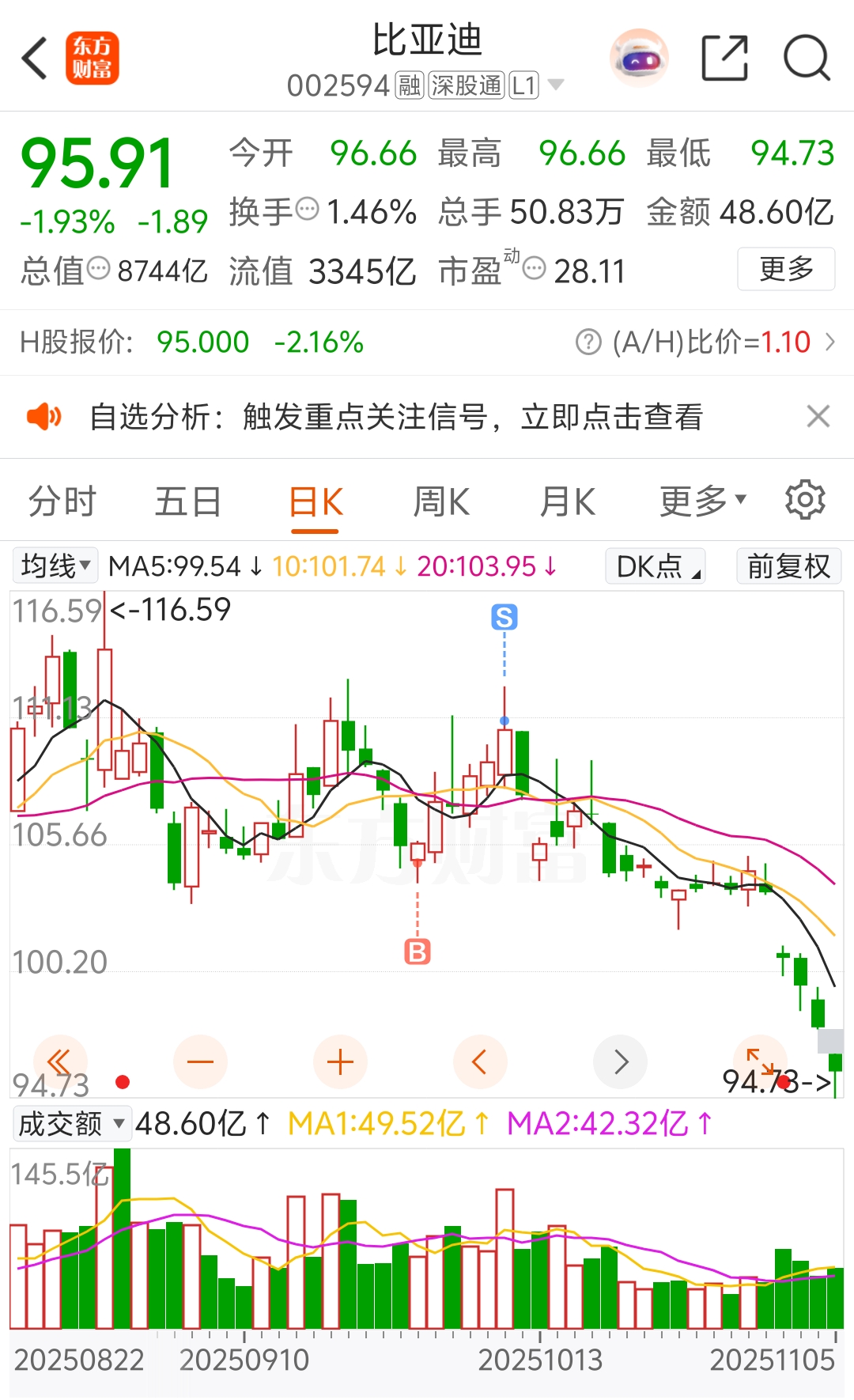 $比亚迪(SZ002594)$ 幸好跑光了,咋回事跌那么很了