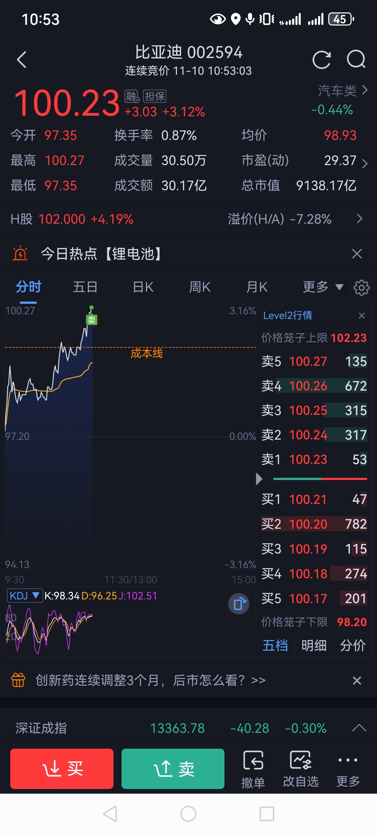 $比亚迪(SZ002594)$ 不纠结了,100.13卖了。已清仓。