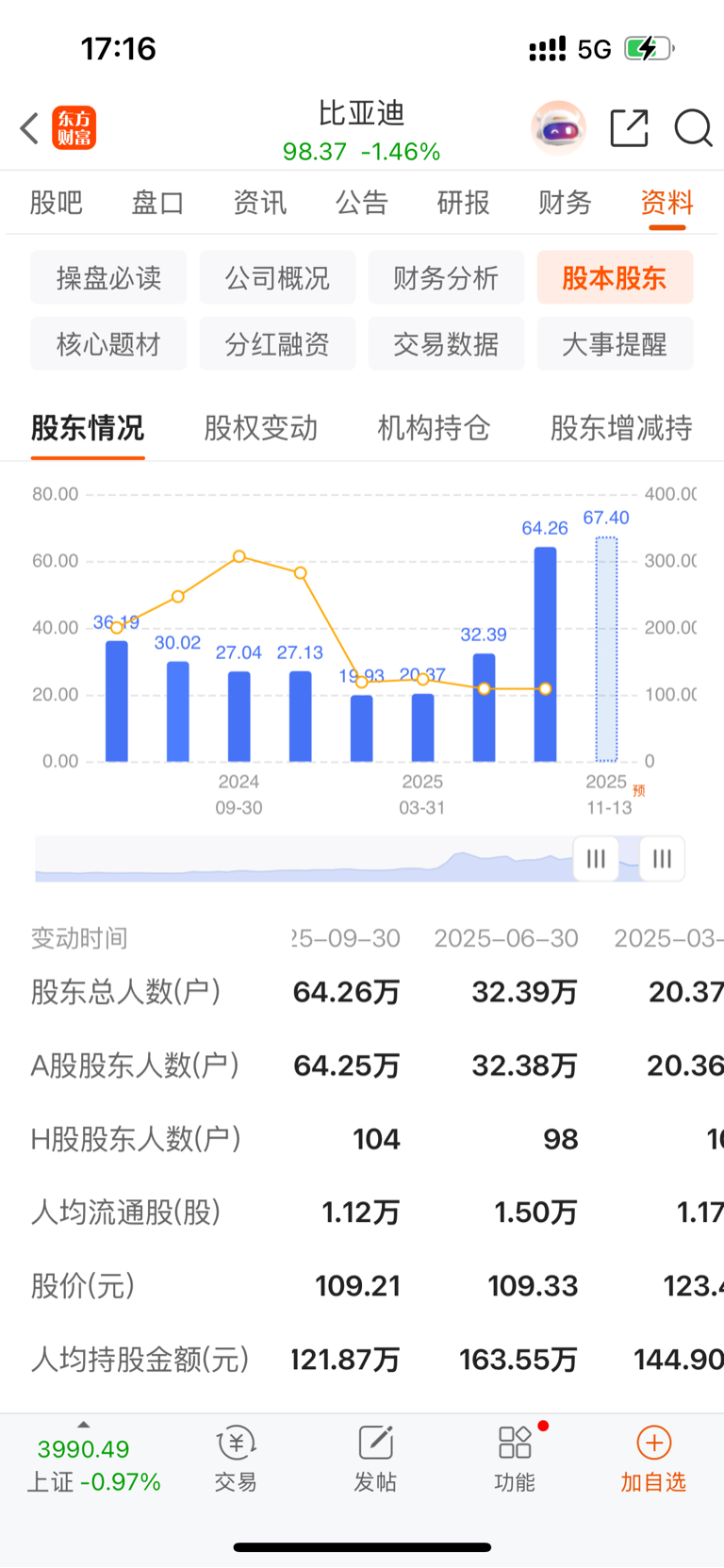 $比亚迪(SZ002594)$ 60万股东了啊